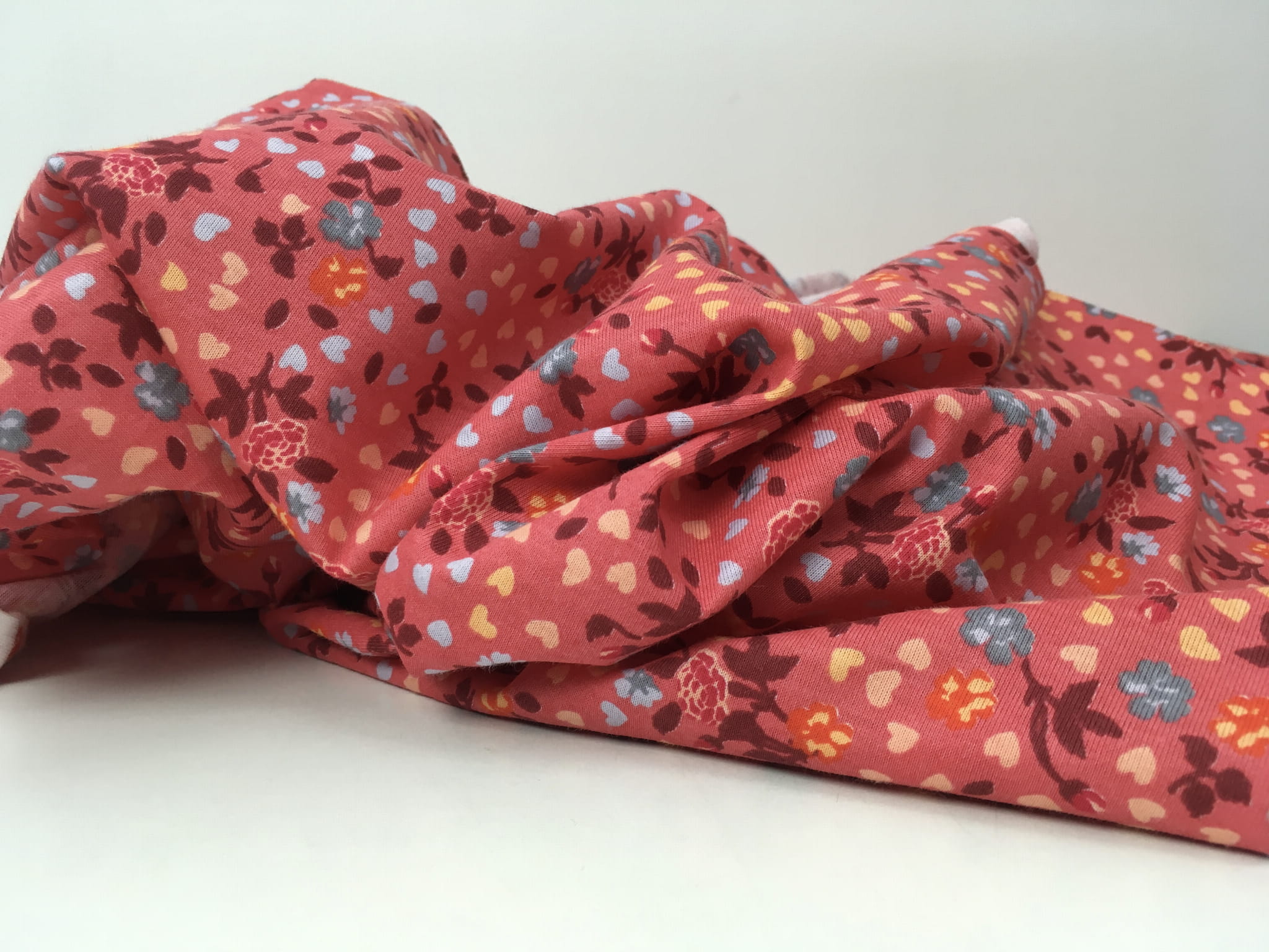 Dzianina bawełniana jersey, kwiatki, serduszka