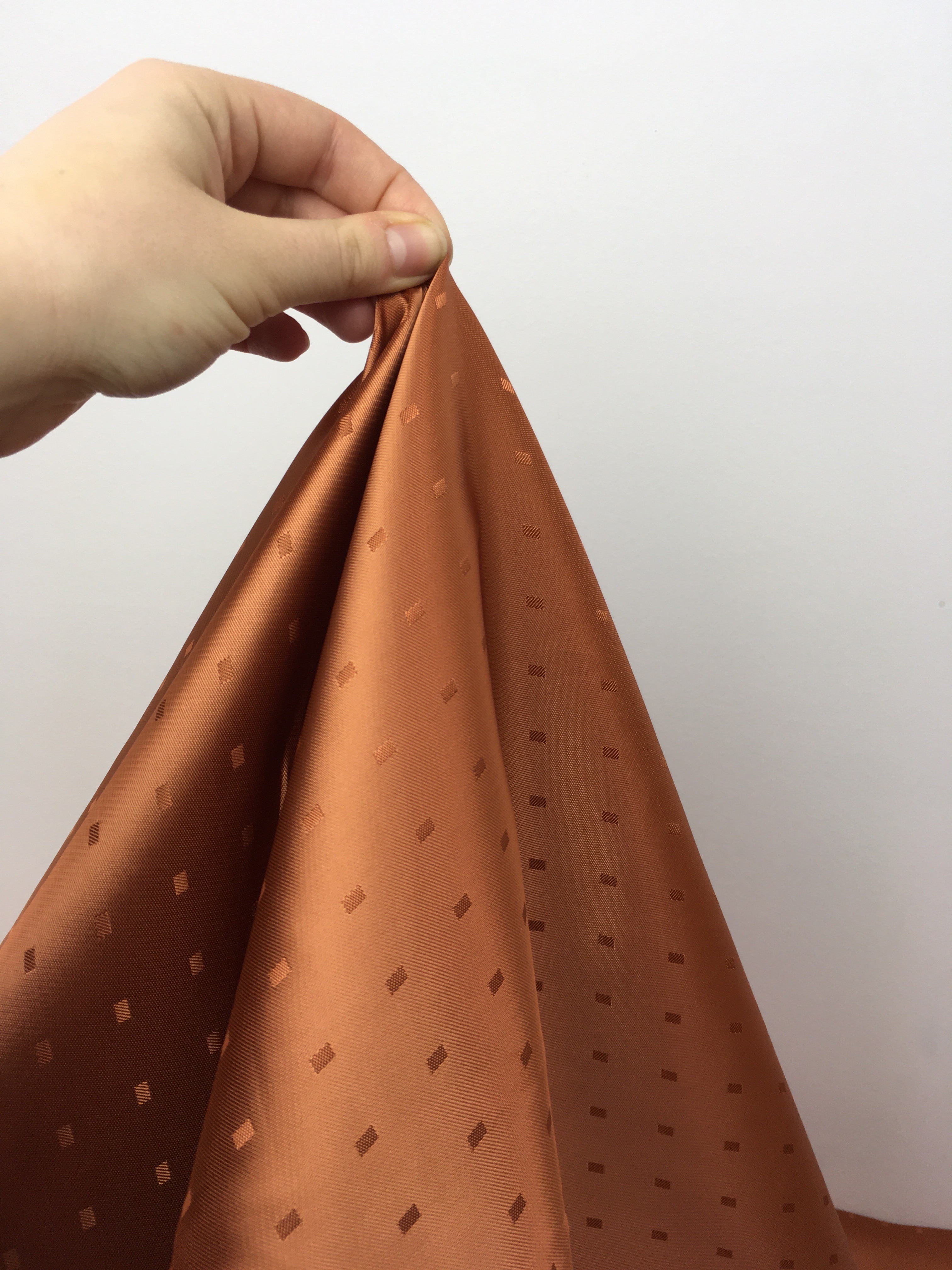 Połyskująca tkanina podszewkowa. Przyjemna w dotyku, podatna na układanie. Dwustronny, żakardowy rzucik.