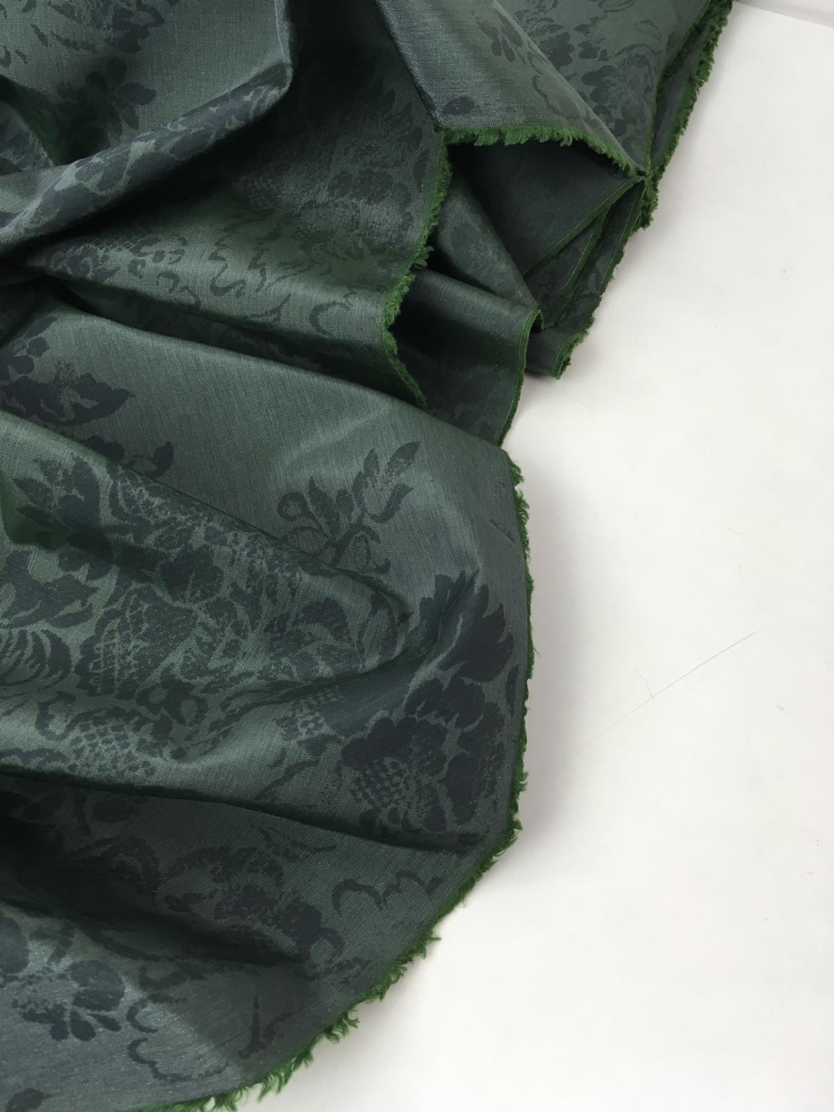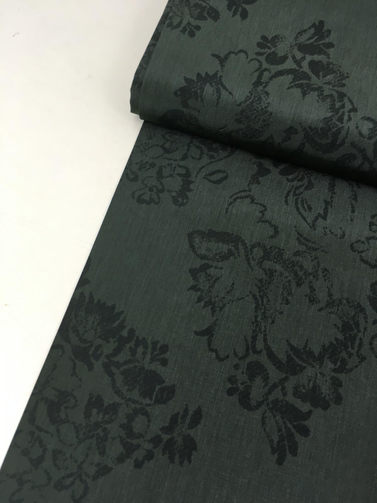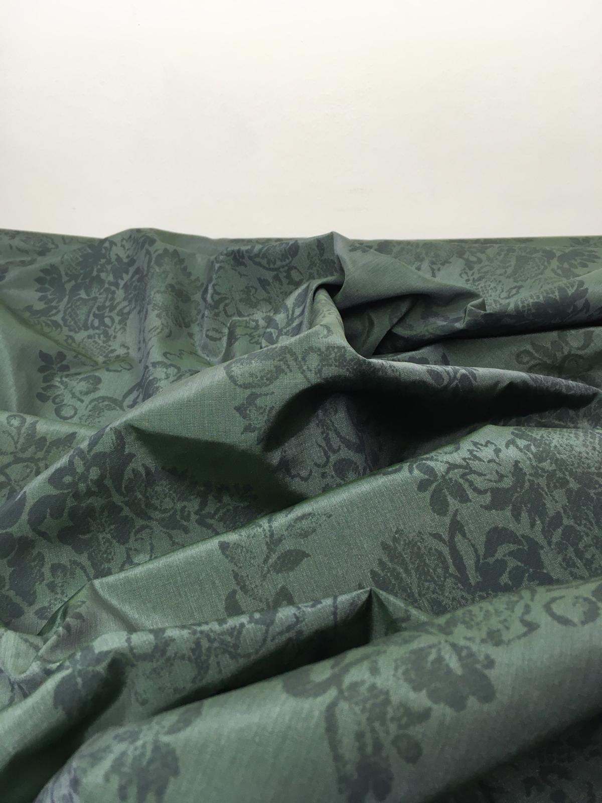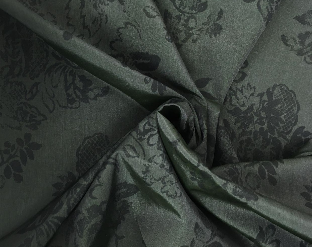 Lekko sztywna tkanina sukienkowa a'la tafta, zielona w kwiaty