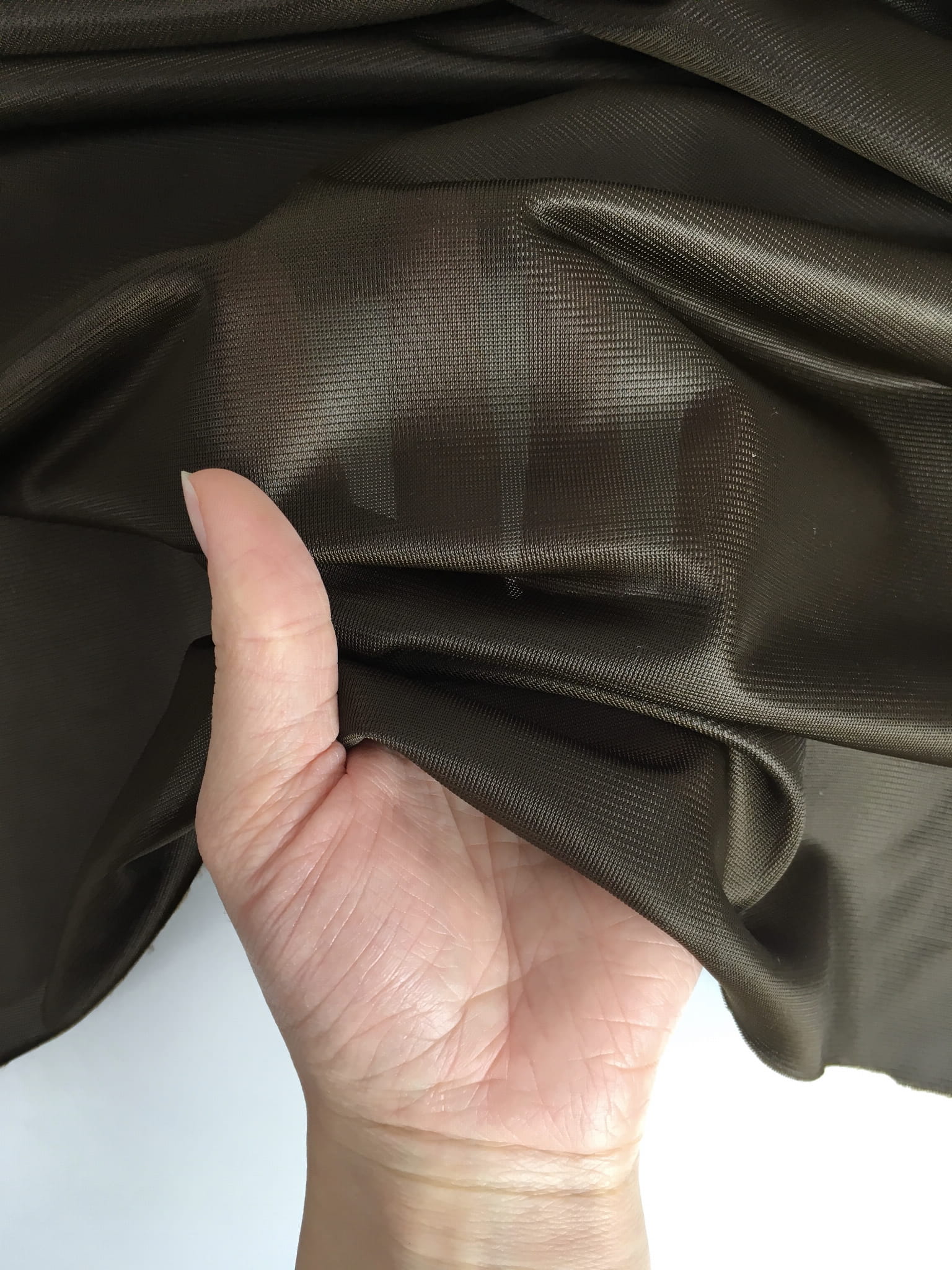 Połyskująca tkanina podszewkowa ze strukturą drobnej siatki.