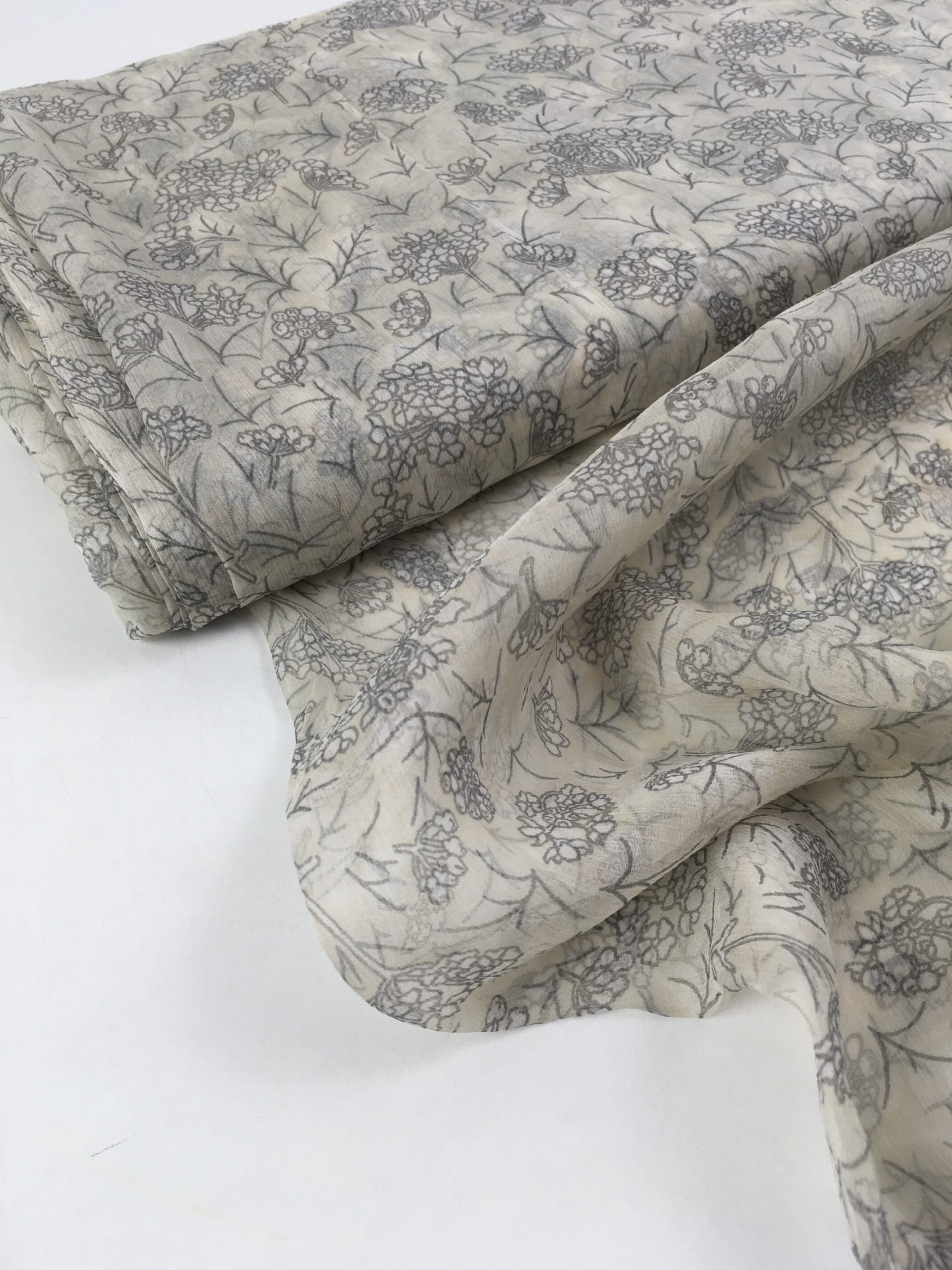Bardzo lekka, zwiewna, prześwitująca tkanina jedwabna. Układa się miękko, płynnie, luźno. Zastosowanie: sukienki, koszule, spódnice, apaszki. Wymaga podszewki.