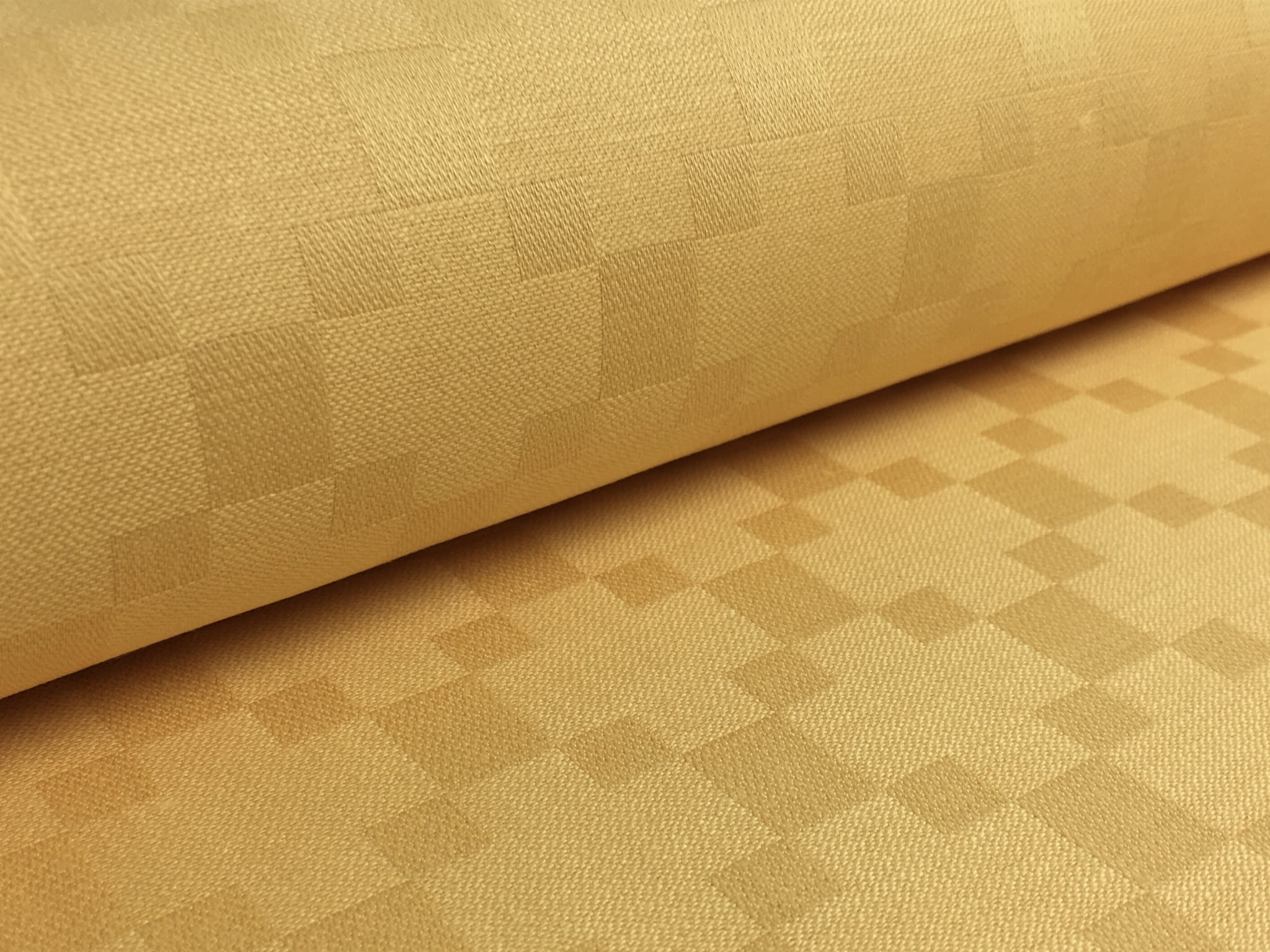 Zwarta, stabilna, sztywna tkanina z drobnym, żakardowym wzorem. Materiał mieniący się, elegancki, nieelastyczny.