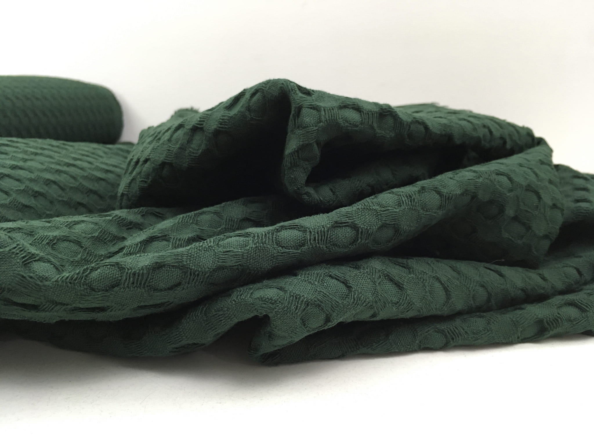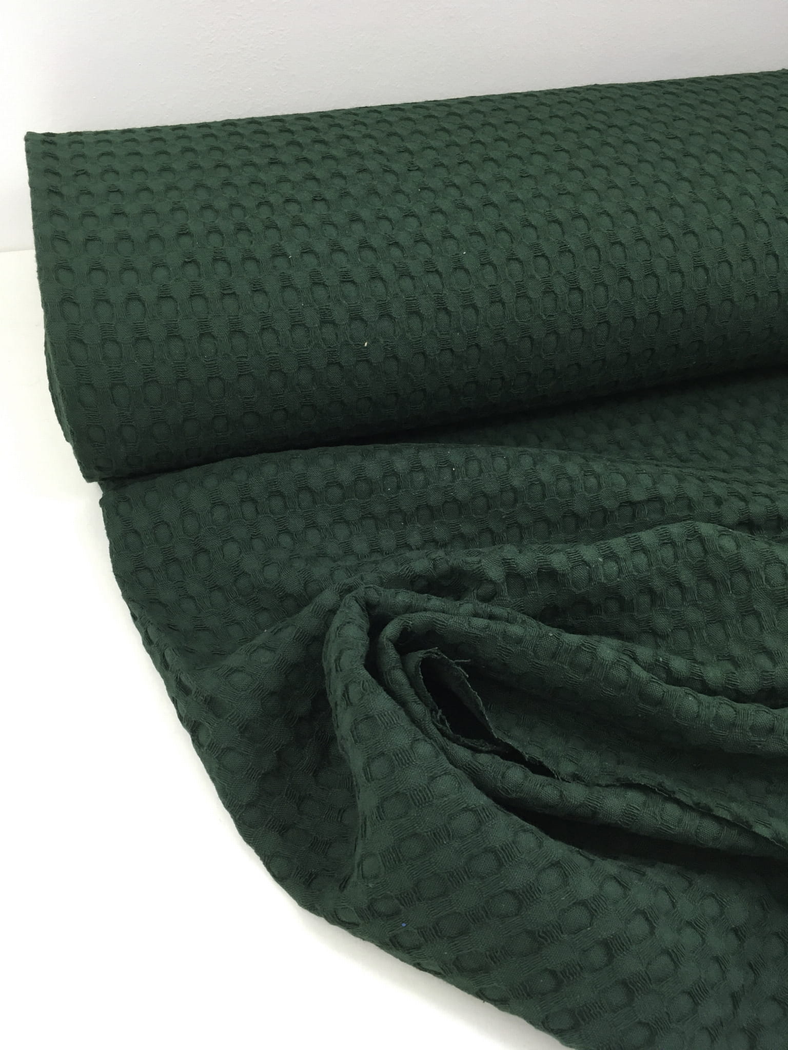 Tkanina bawełniana, gruby wafel, butelkowa zieleń