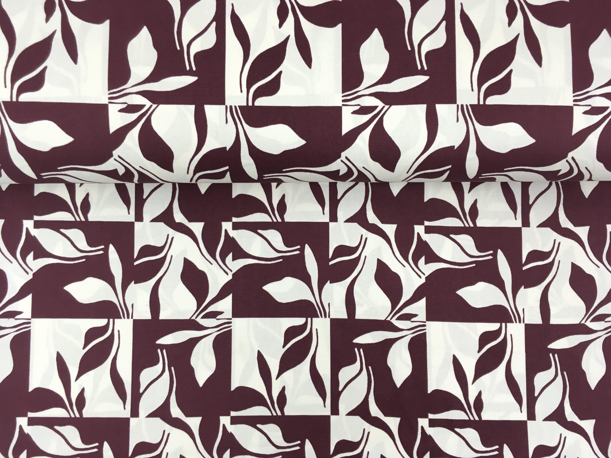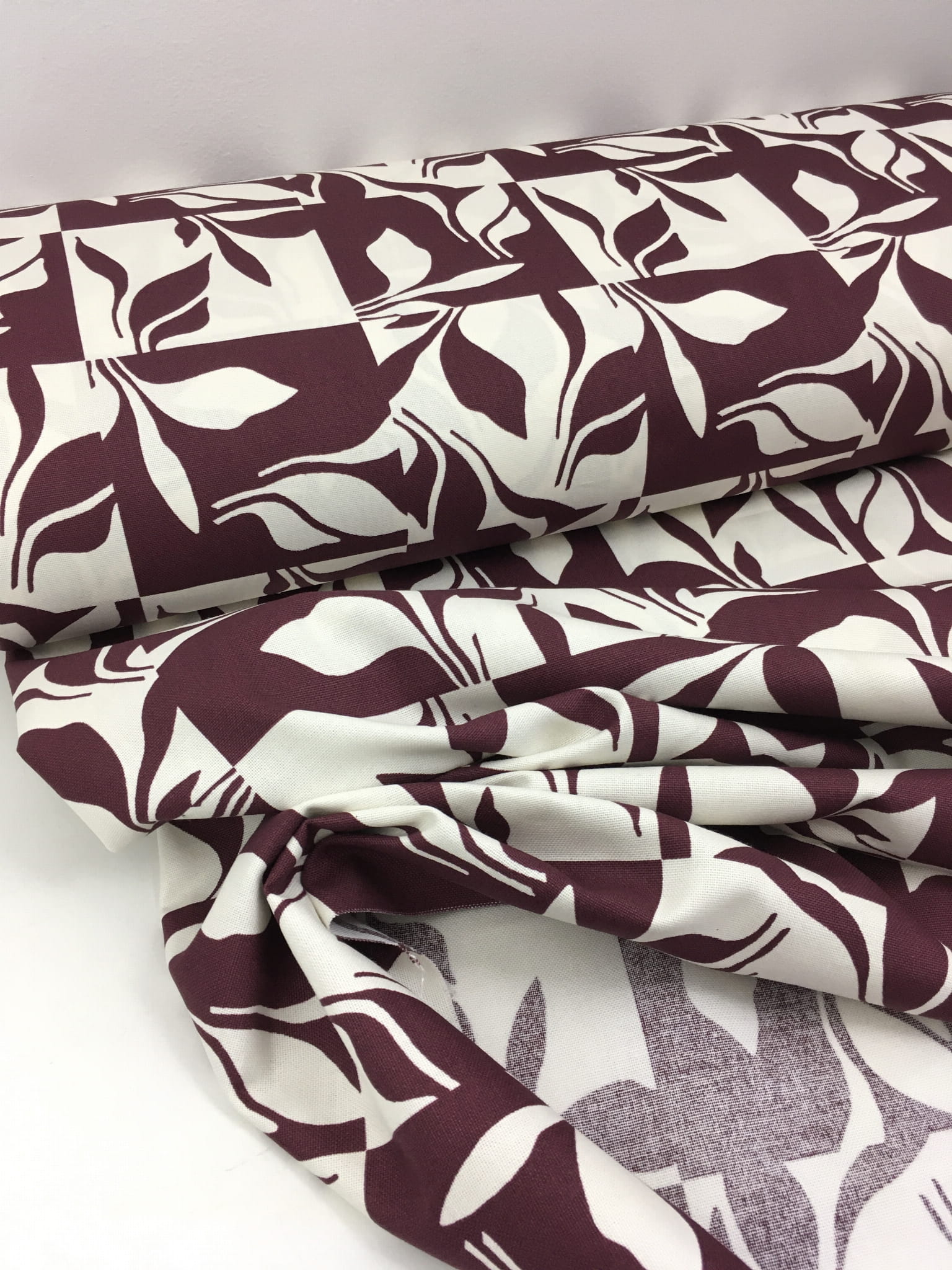 Tkanina bawełniana dekoracyjna, motyw kwiatowy burgundowy