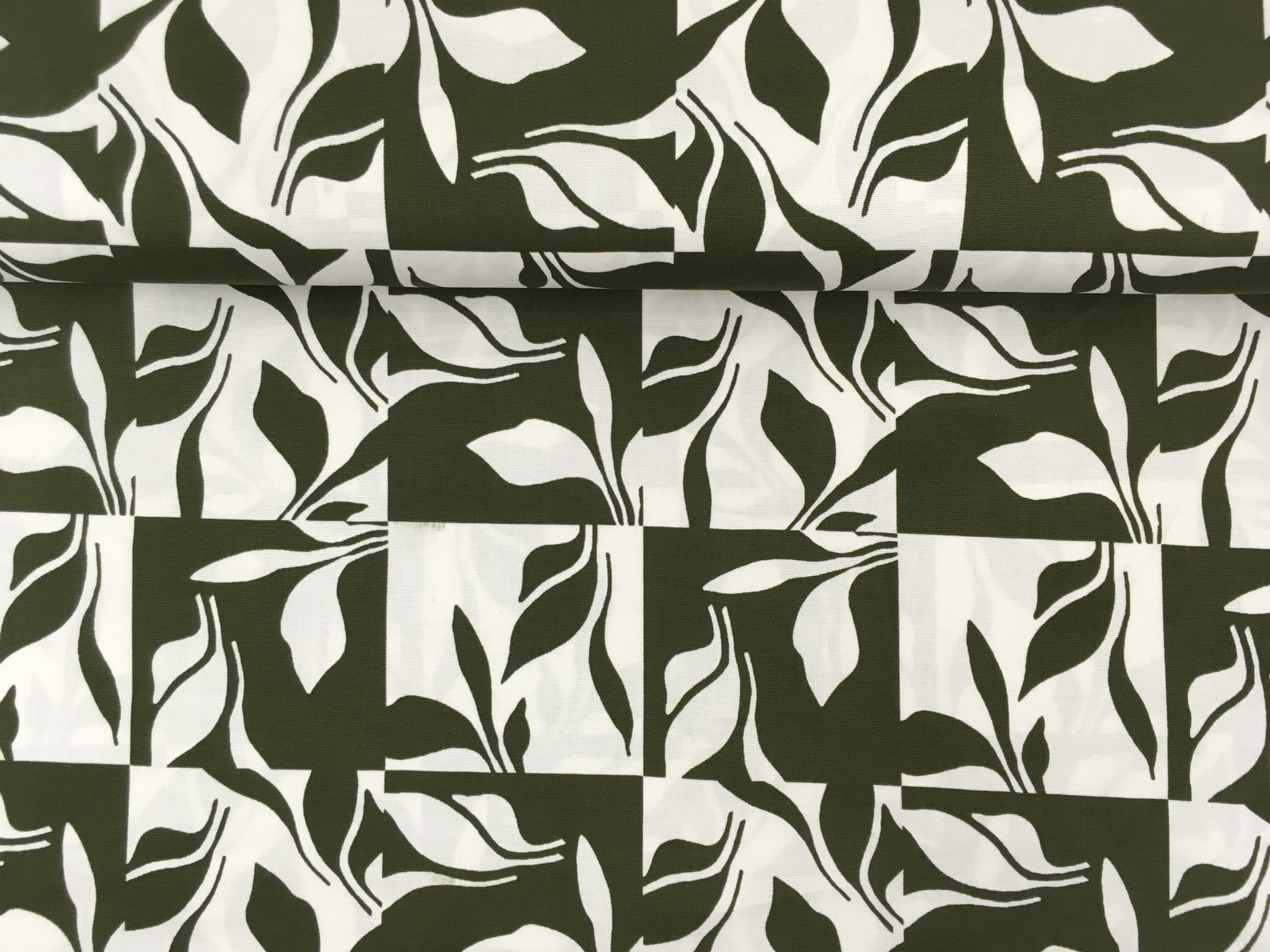 Tkanina bawełniana dekoracyjna, motyw kwiatowy zielony