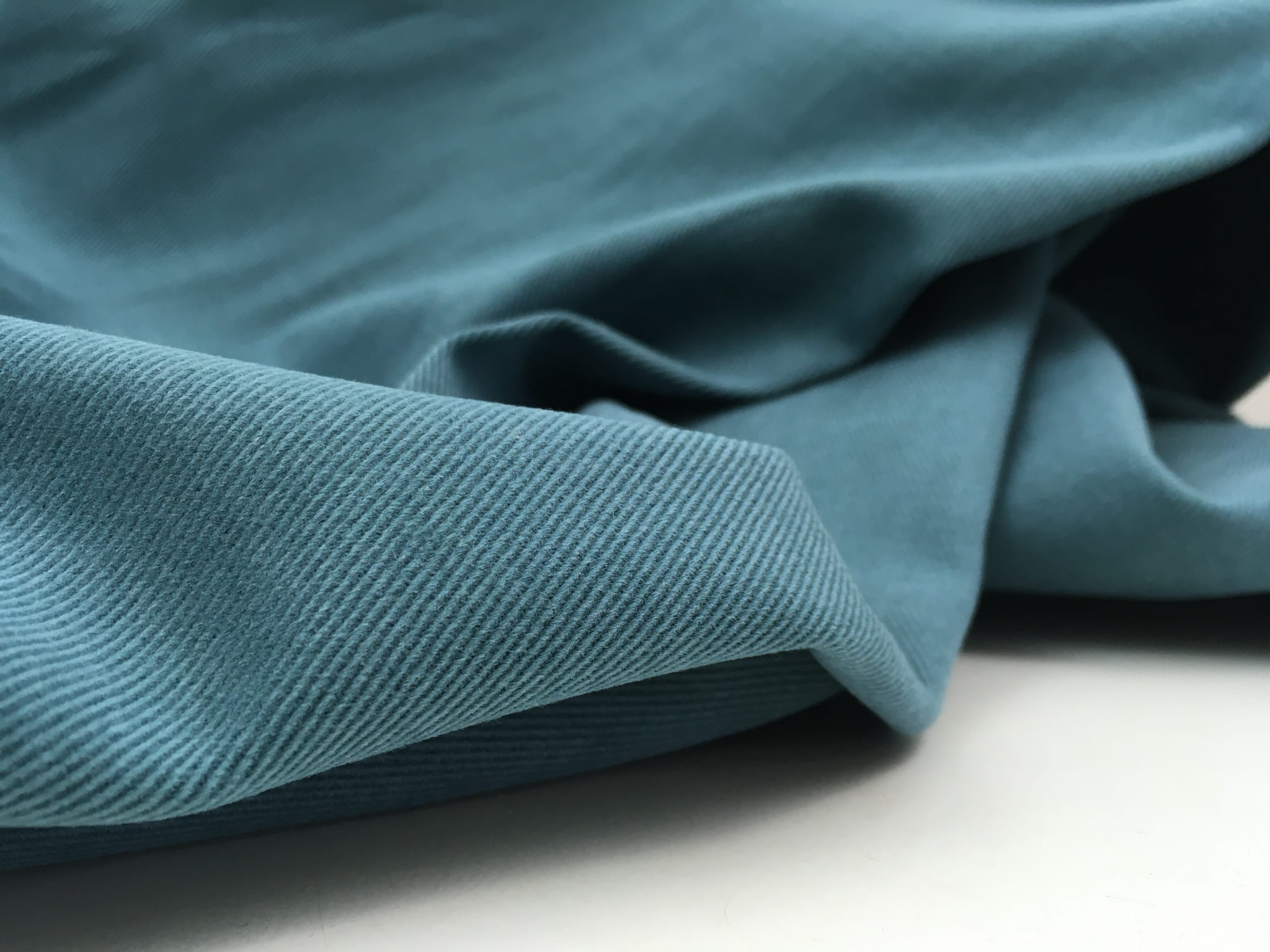 Mocny materiał o skośnym splocie i delikatnie zamszowej fakturze. Ładnie połyskuje w świetle. Jest przyjemny w dotyku. Doskonale sprawdzi się w szyciu kurtek typu katany, kamizelek, ogrodniczek, spodni, spódnic, sukienek oraz jako materiał obiciowy. Ma widoczne i wyczuwalne prążki typu sztruks.