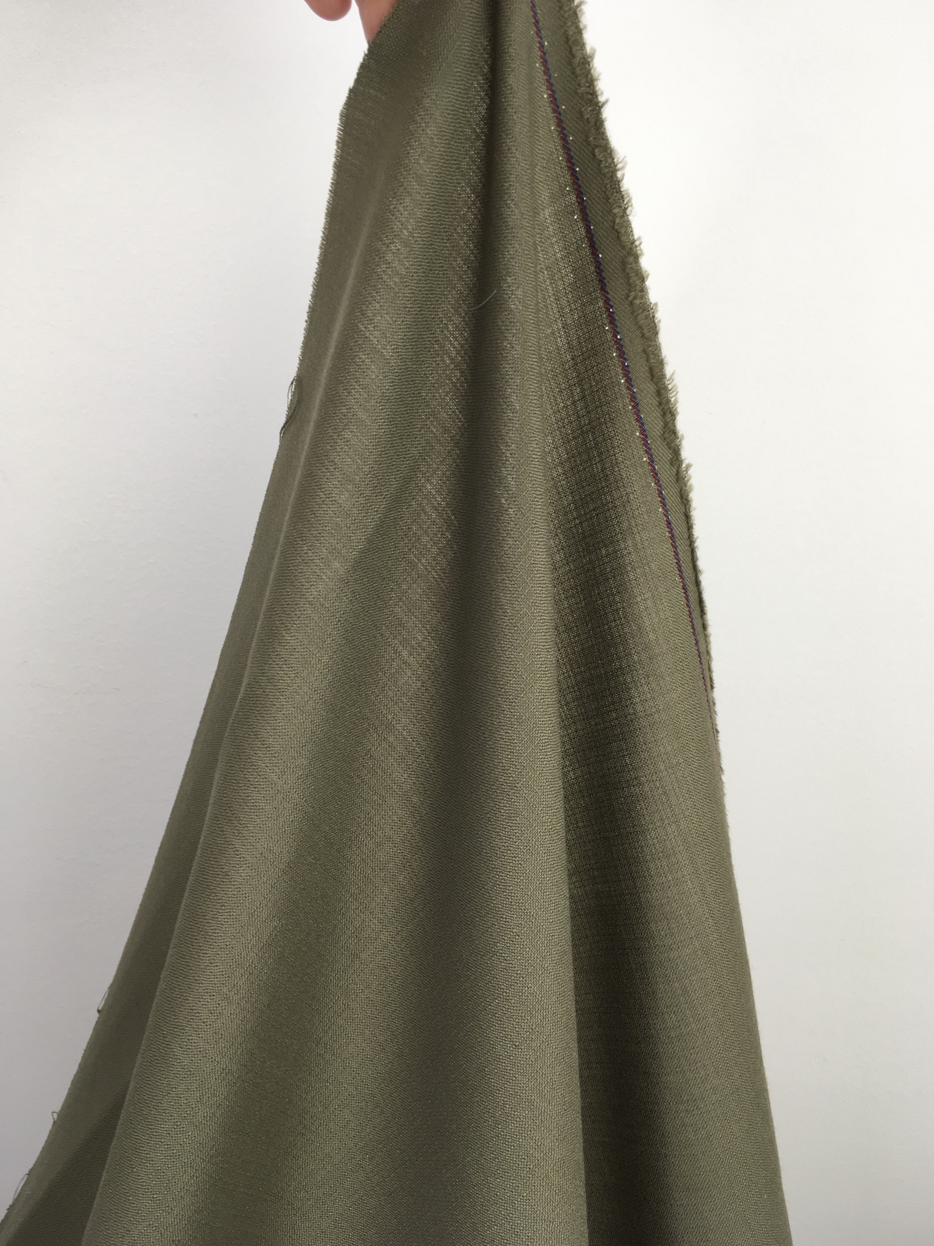 Klasyczna tkanina kostiumowa. Nieco sztywniejsza, trzyma formę. Posiada widoczny splot, lekko prześwituje pod światło. Zastosowanie: lekkie, ale eleganckie garnitury, żakiety, spódnice, marynarki, spodnie, sukienki, ewentualnie przeznaczenie dekoracyjne.