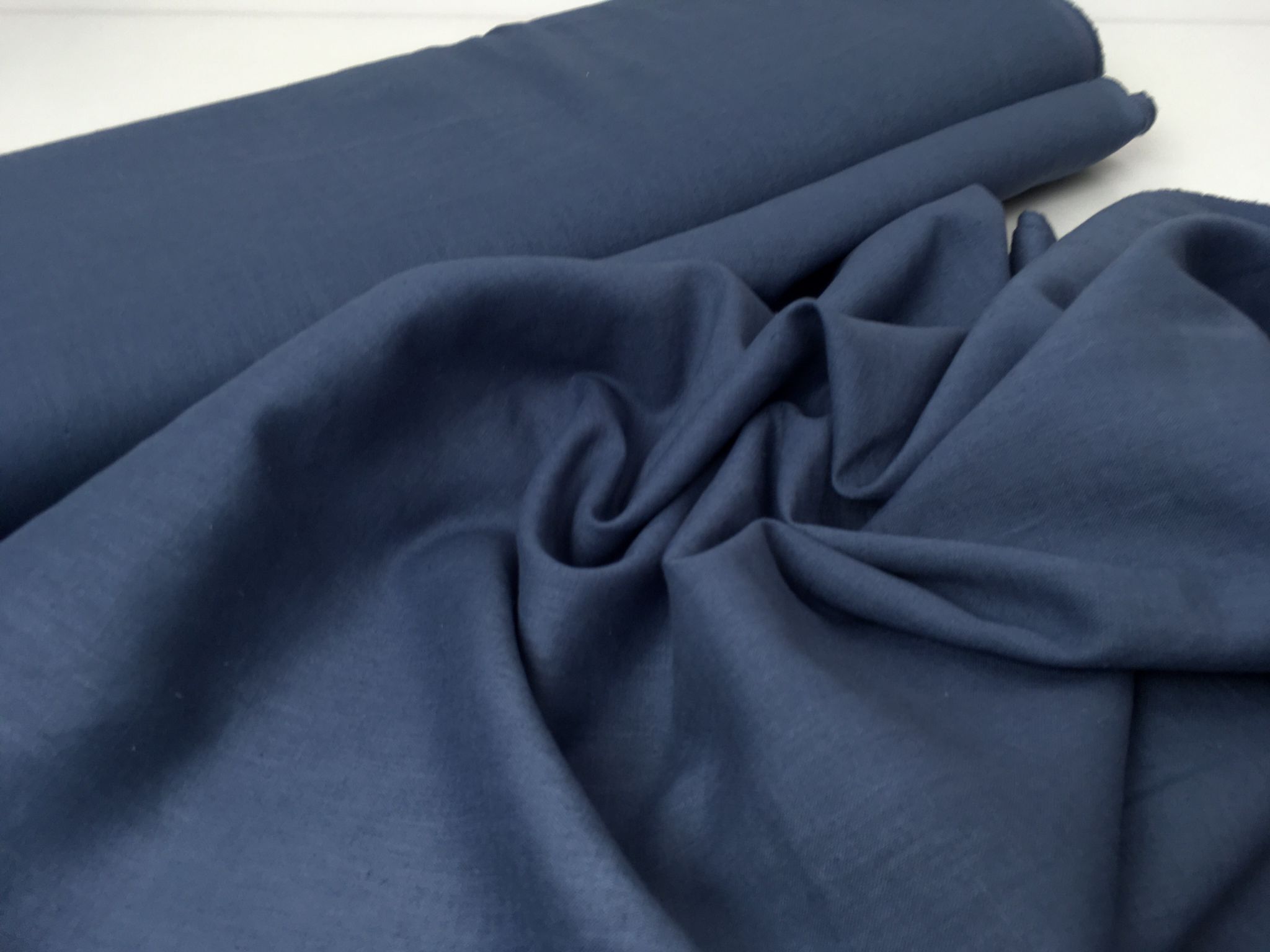 Tkanina lniana z domieszką bawełny, niebieska