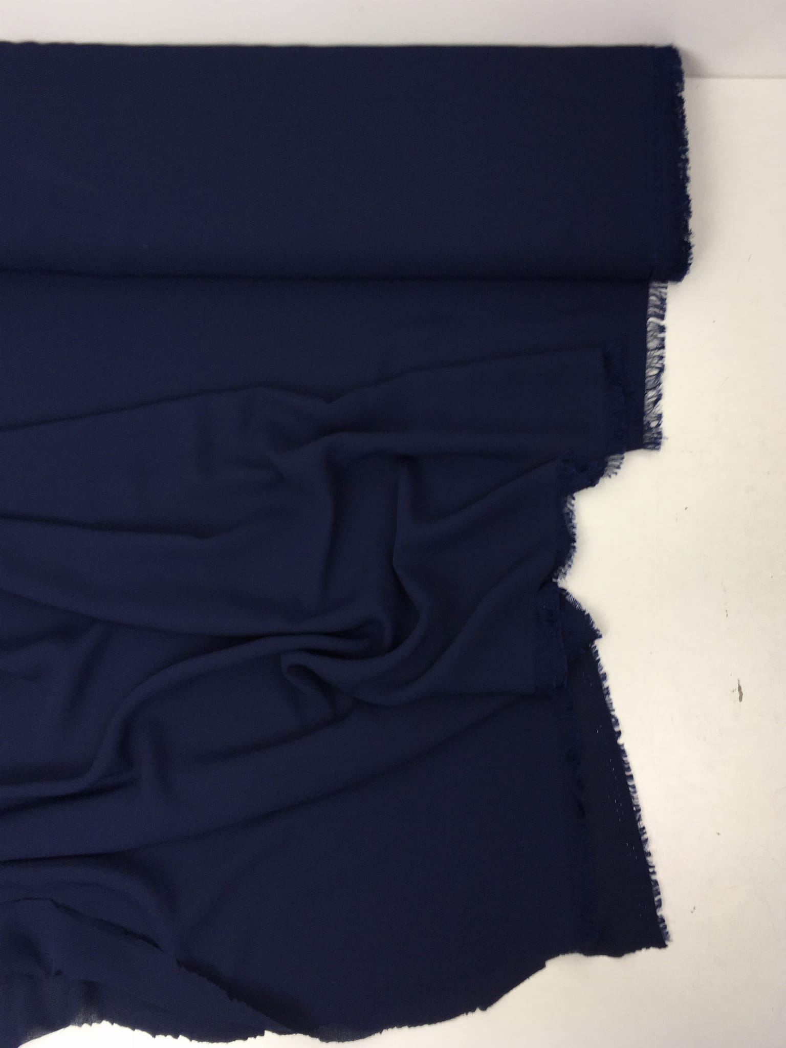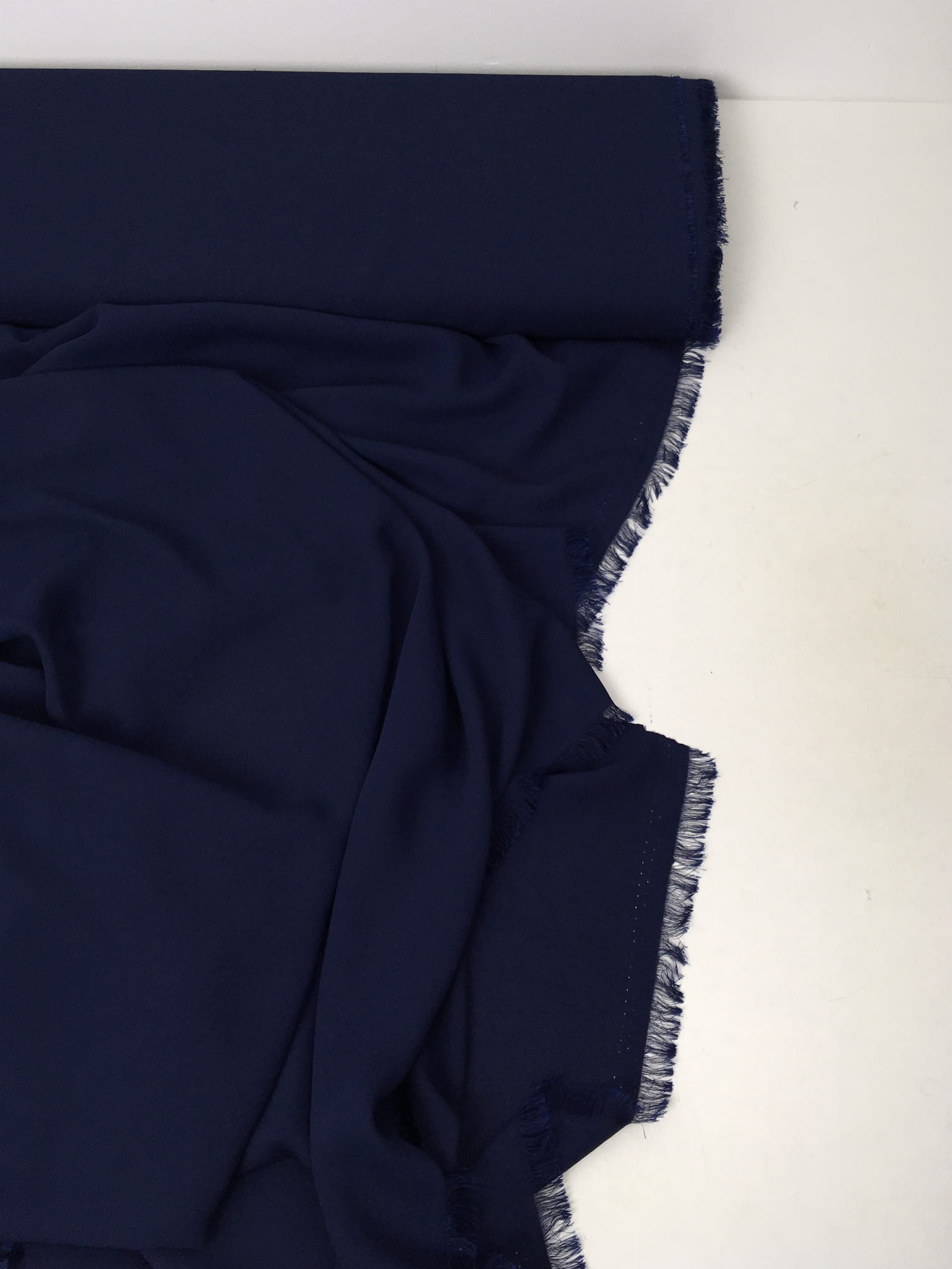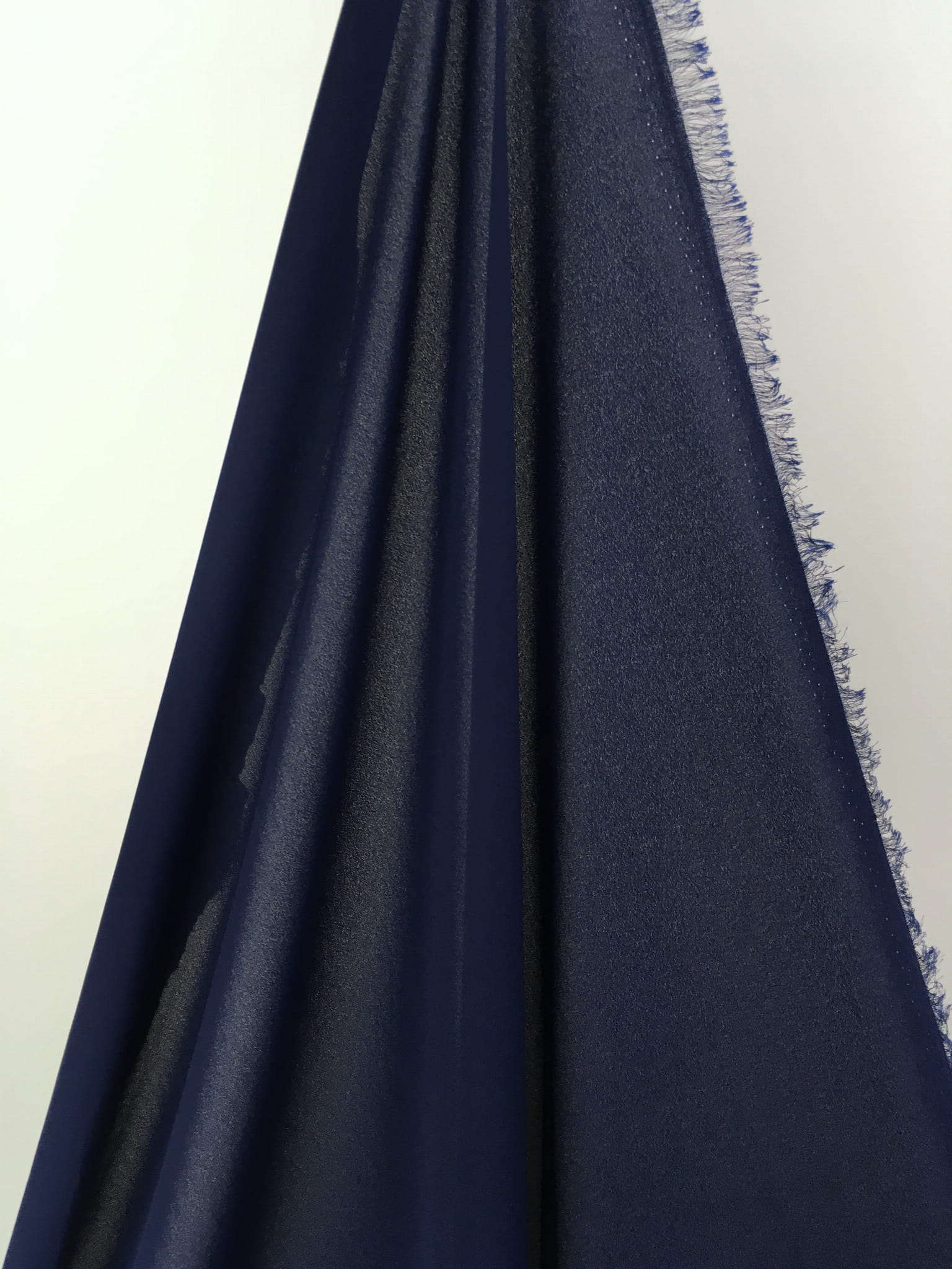Lekka, prześwitująca tkanina ubraniowa. W dotyku gładka, nie szeleszcząca, lejąca.