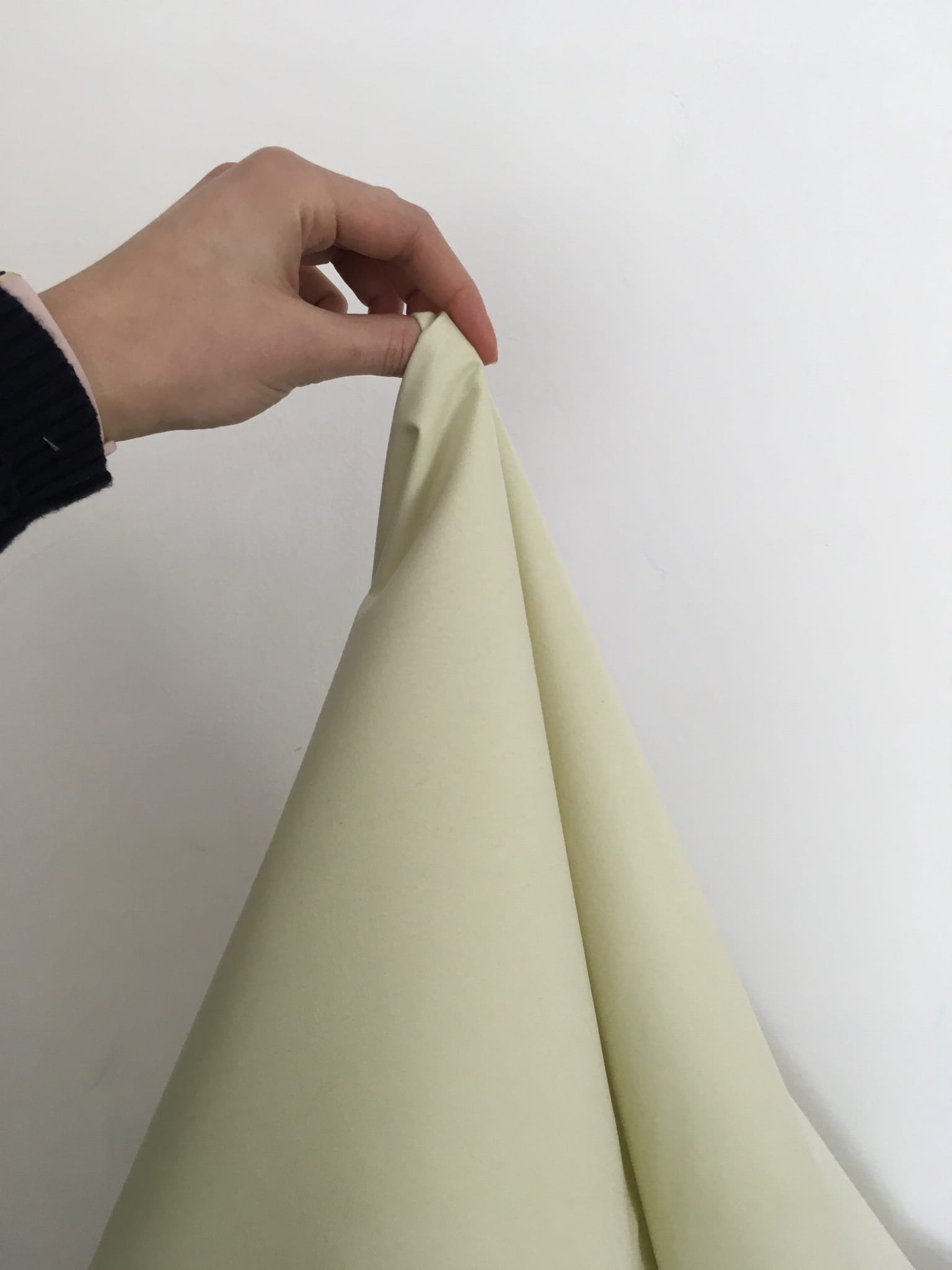 Kremowa tkanina wodoodporna o gęstym splocie. Krople wody pozostają na powierzchni. Tkanina jest dość sztywna i miła w dotyku. Dobrze sprawdzi się w szyciu kurtek, odzieży dziecięcej, sportowej i turystycznej. Można zastosować ją także w szyciu akcesoriów dla zwierząt.