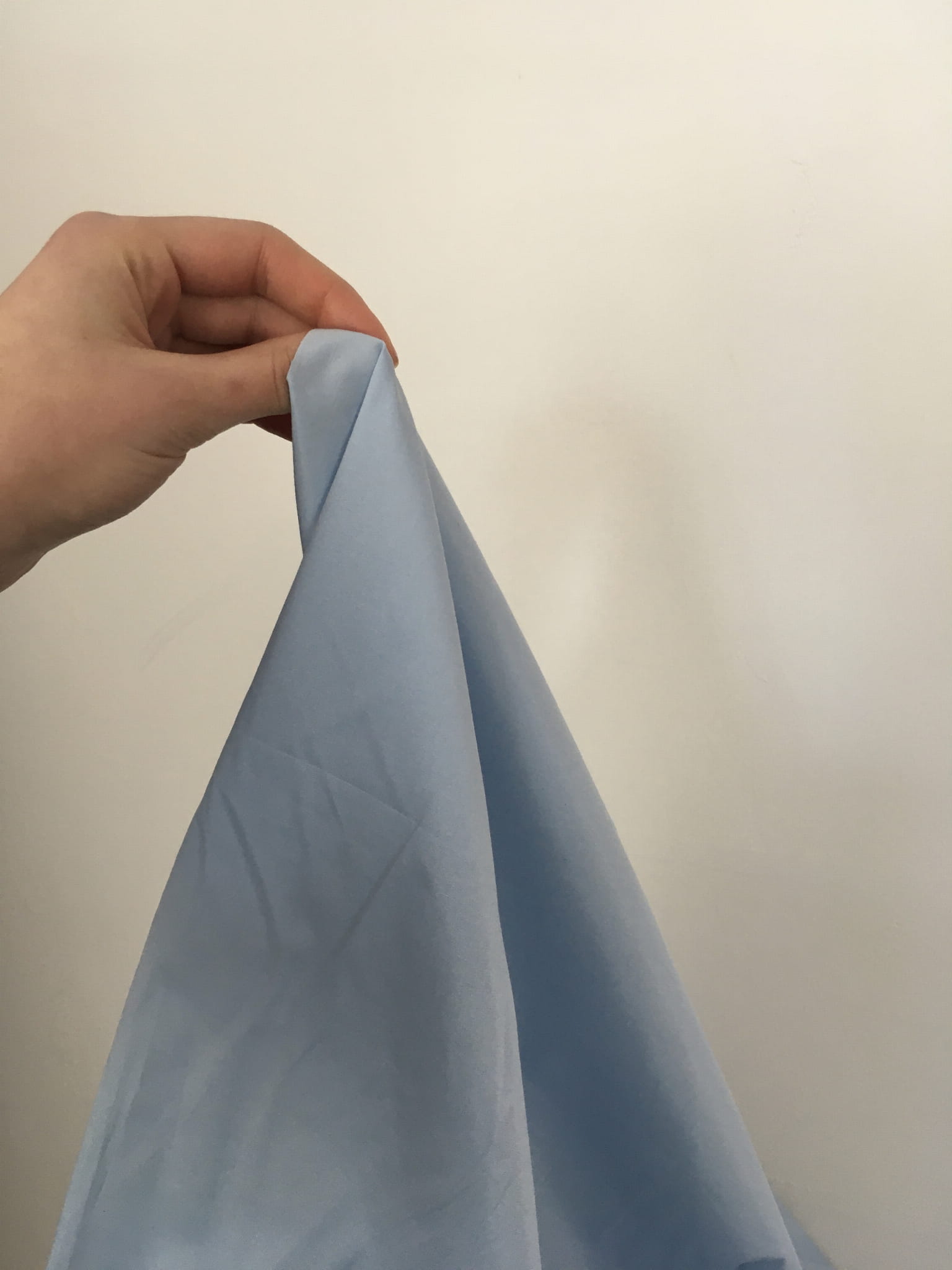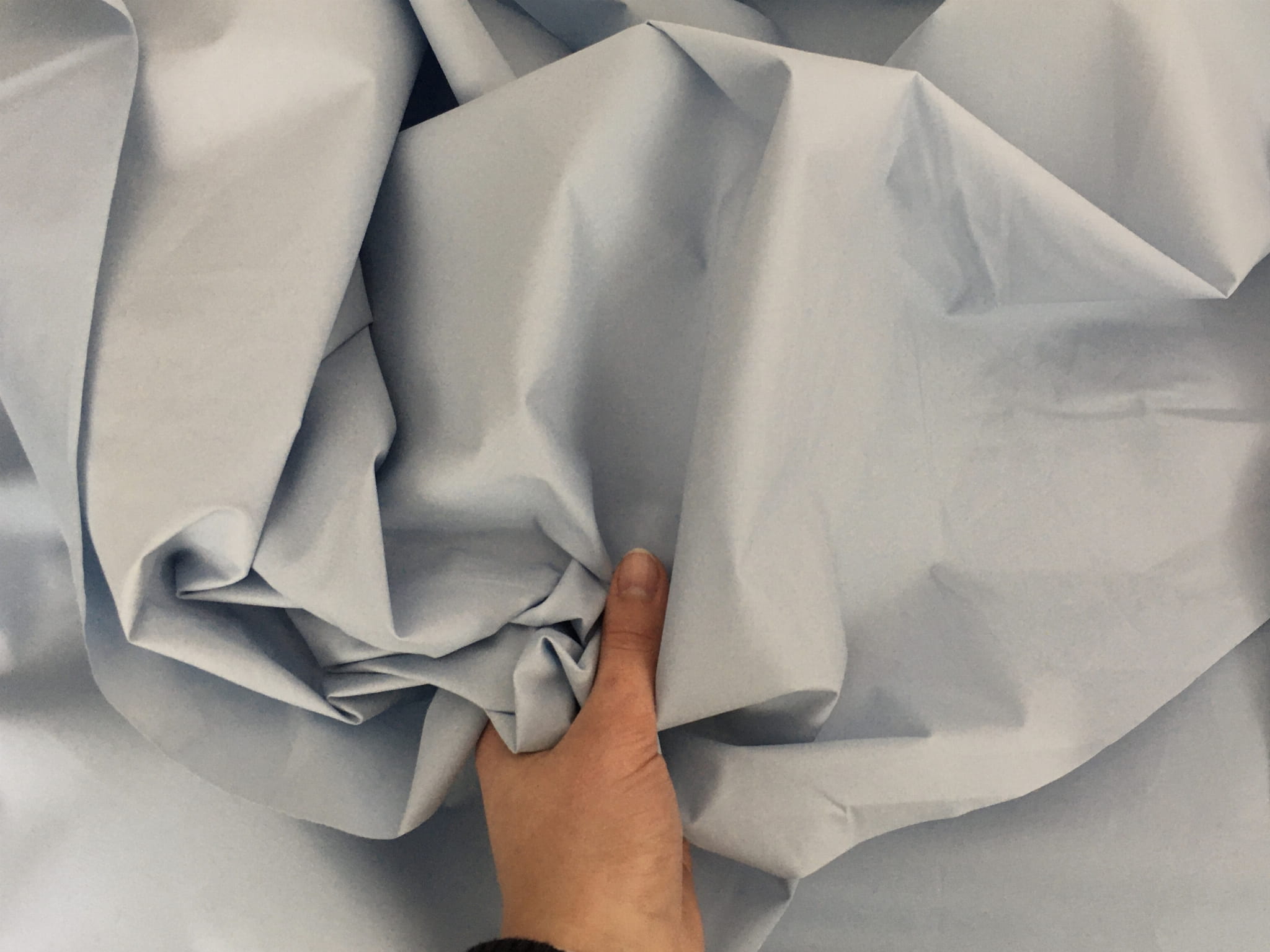 Błękitna tkanina wodoodporna, dość cienka i szeleszcząca, szorstka w dotyku. Krople wody pozostają na powierzchni. Dobrze sprawdzi się w szyciu kurtek, odzieży dziecięcej, sportowej i turystycznej. Można zastosować ją także w szyciu akcesoriów dla zwierząt.