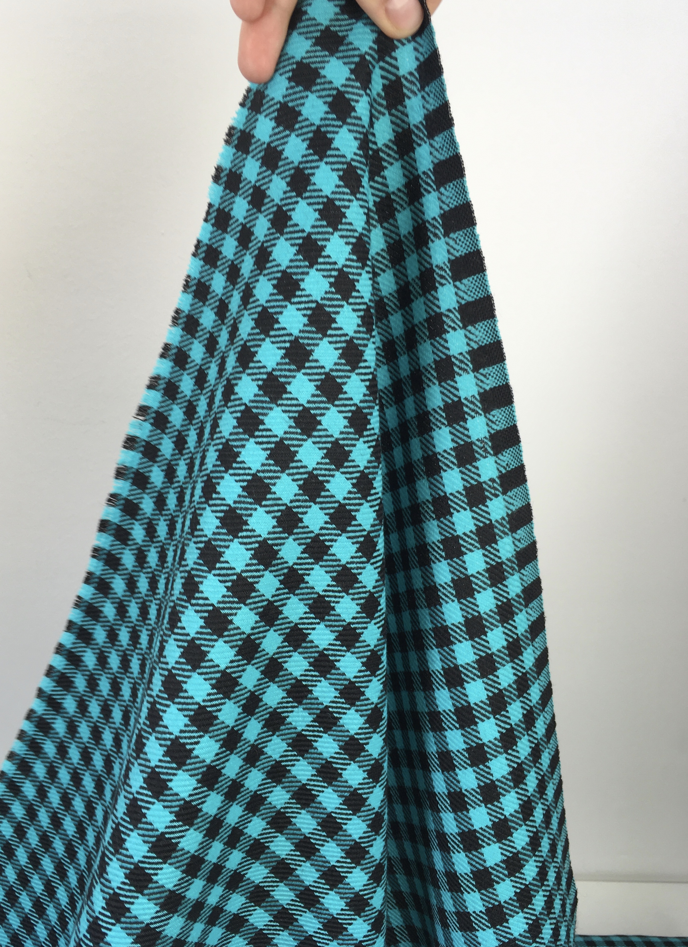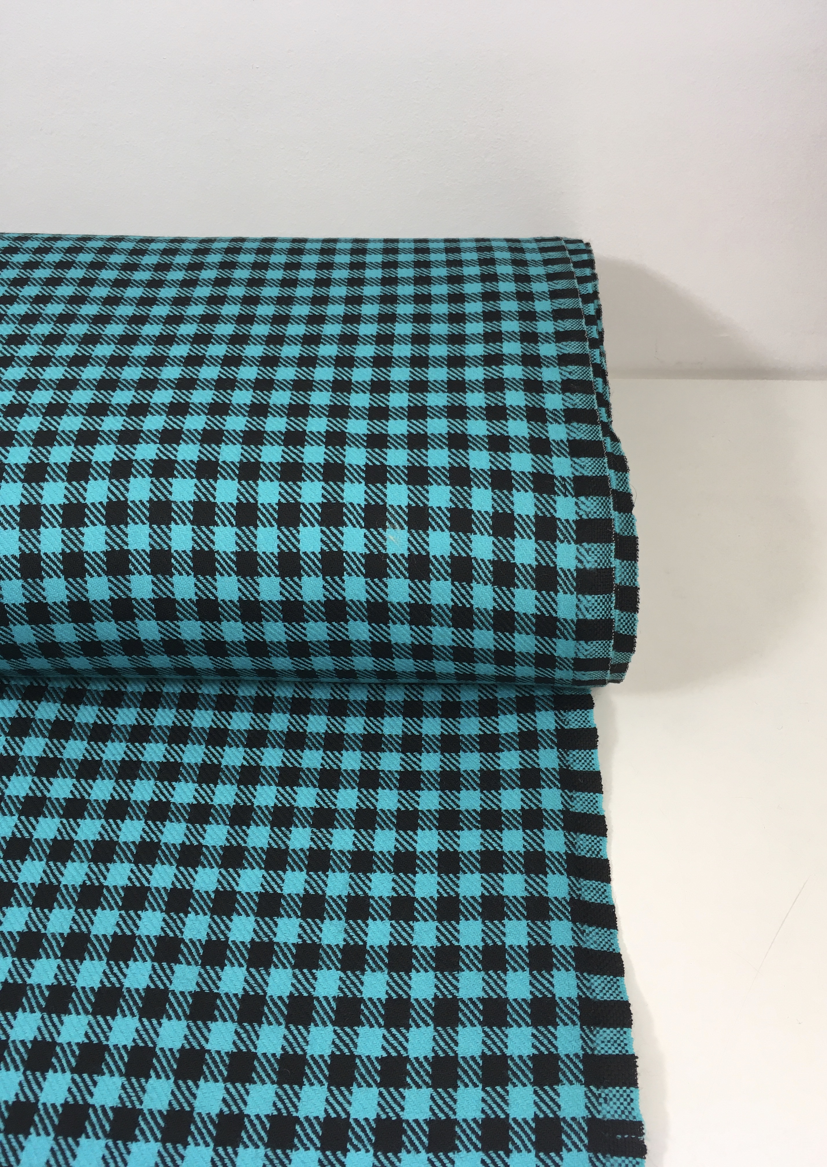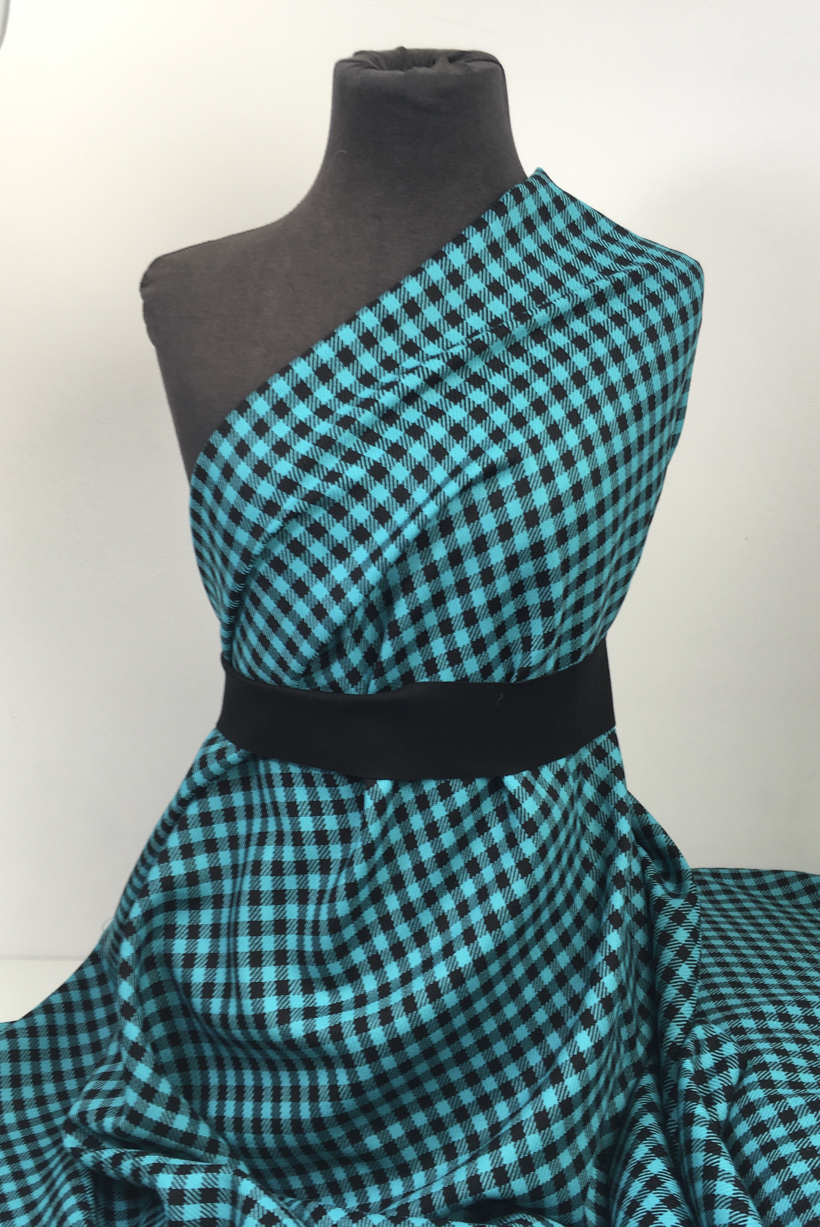 Tkanina ubraniowa, wełna z domieszką, czarno-niebieska kratka
