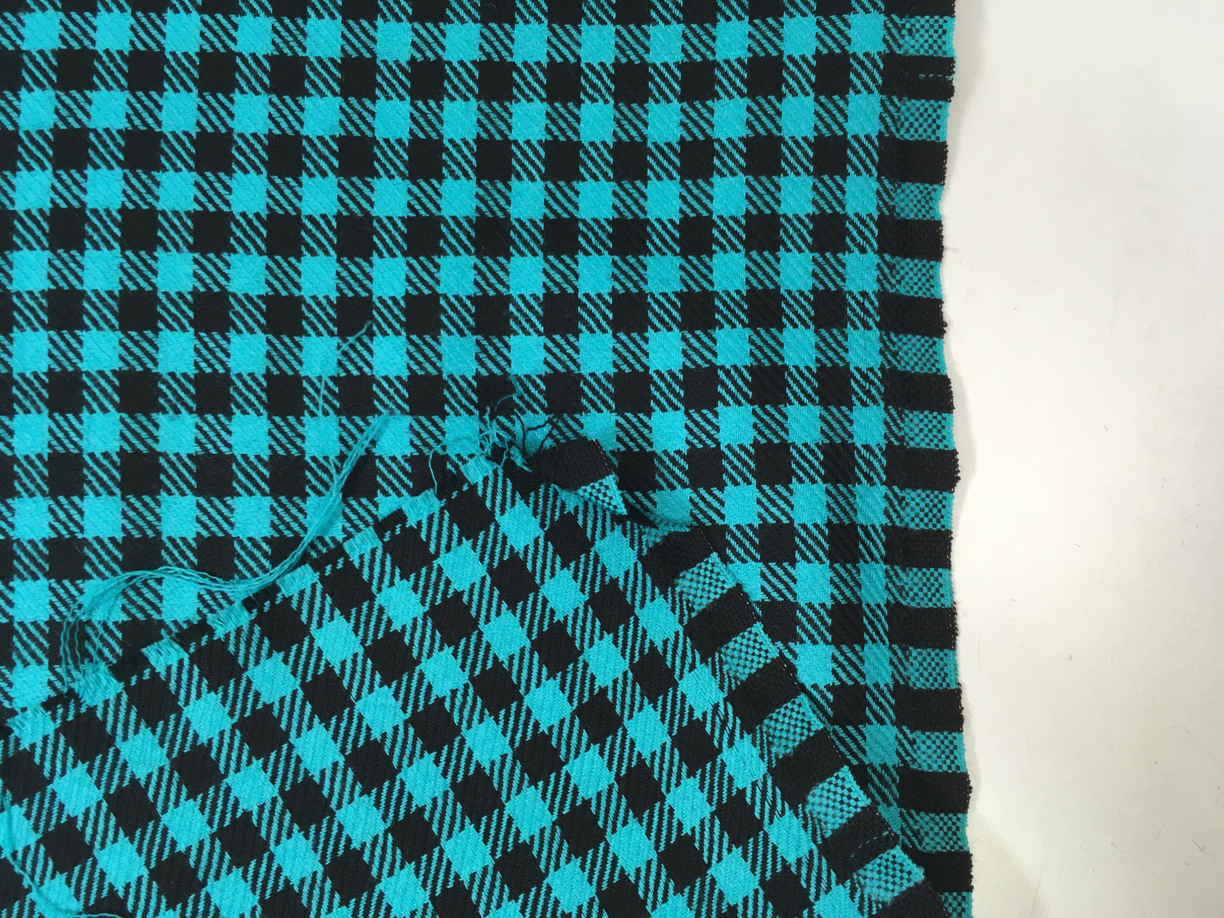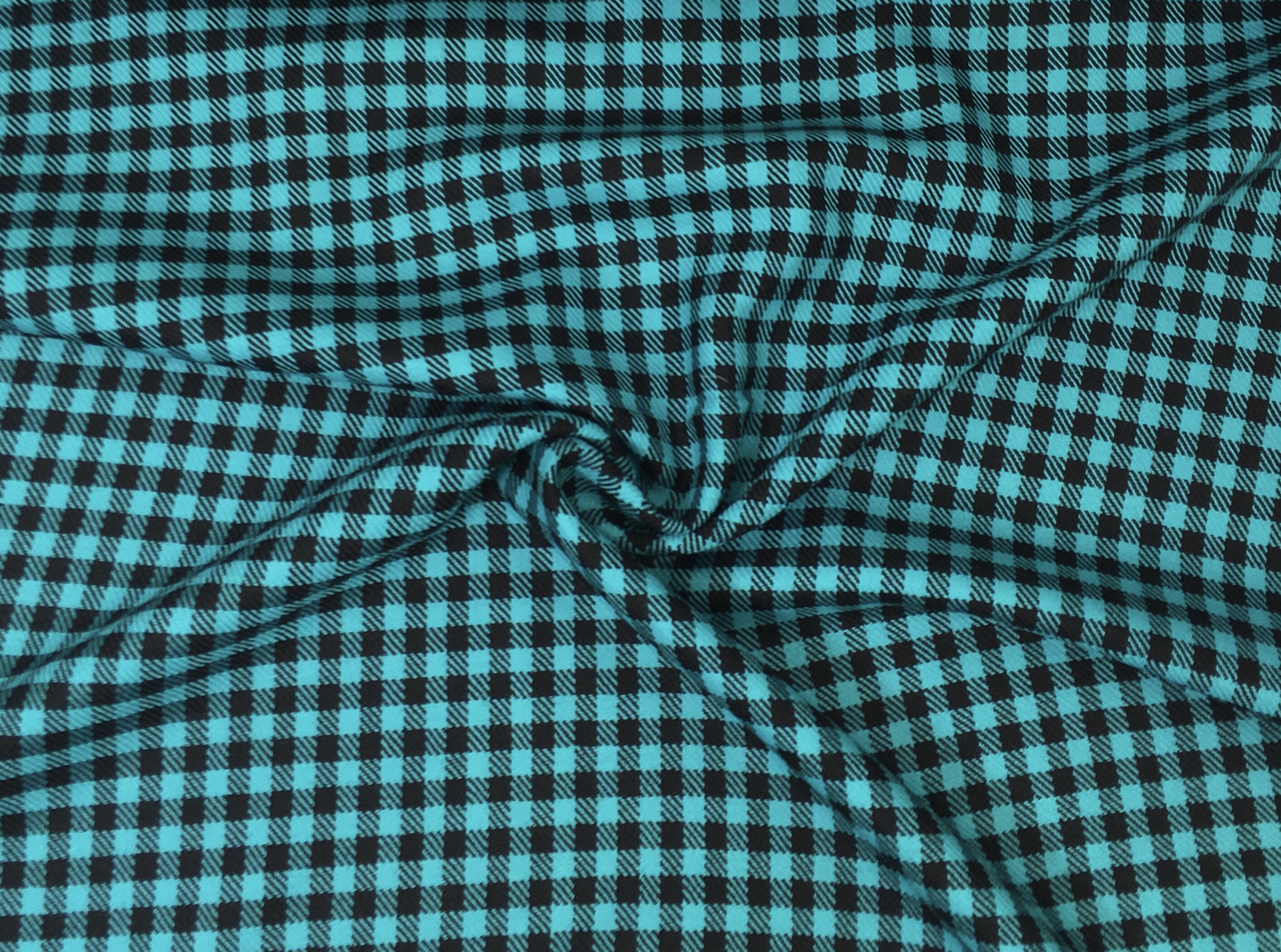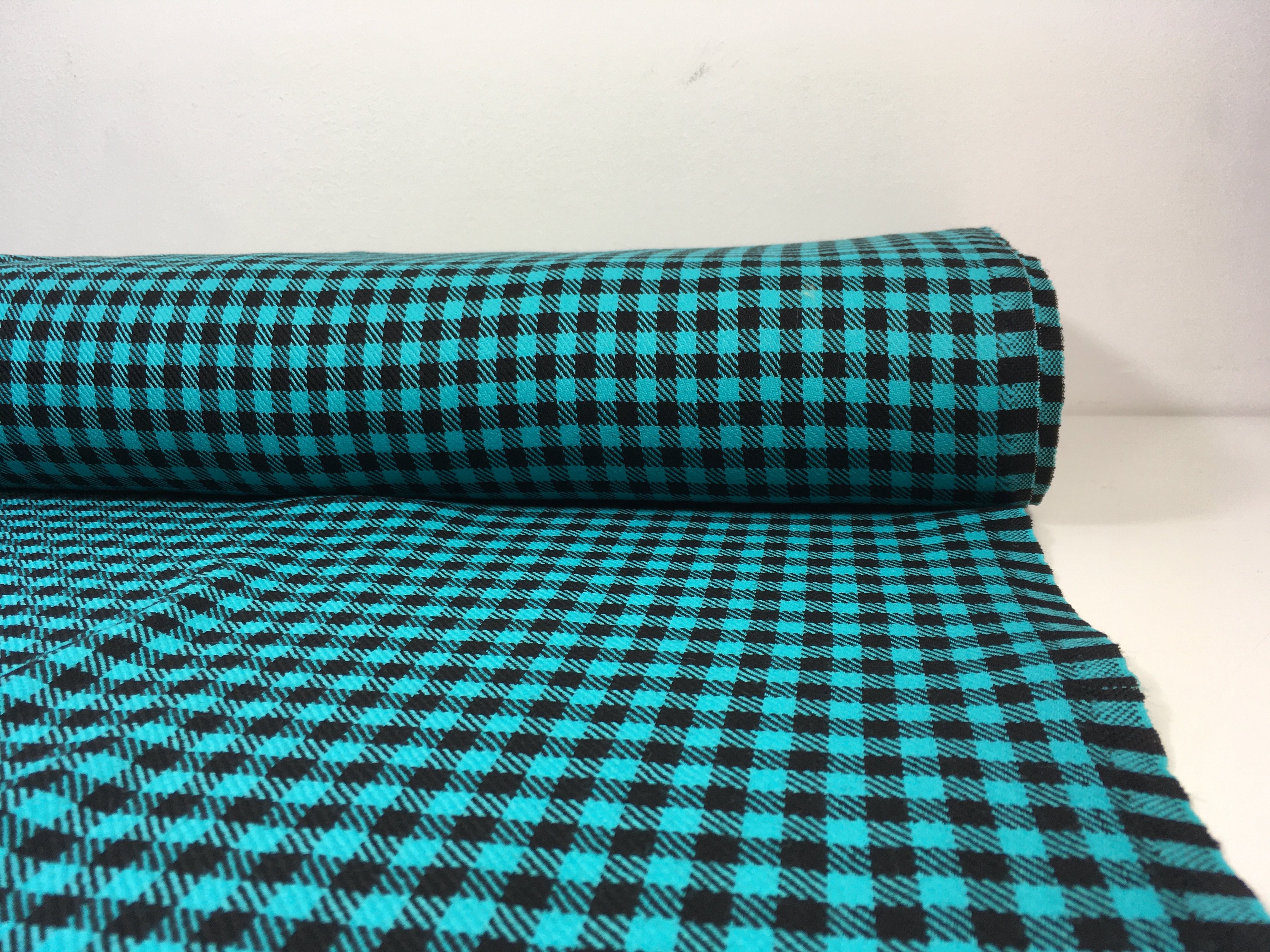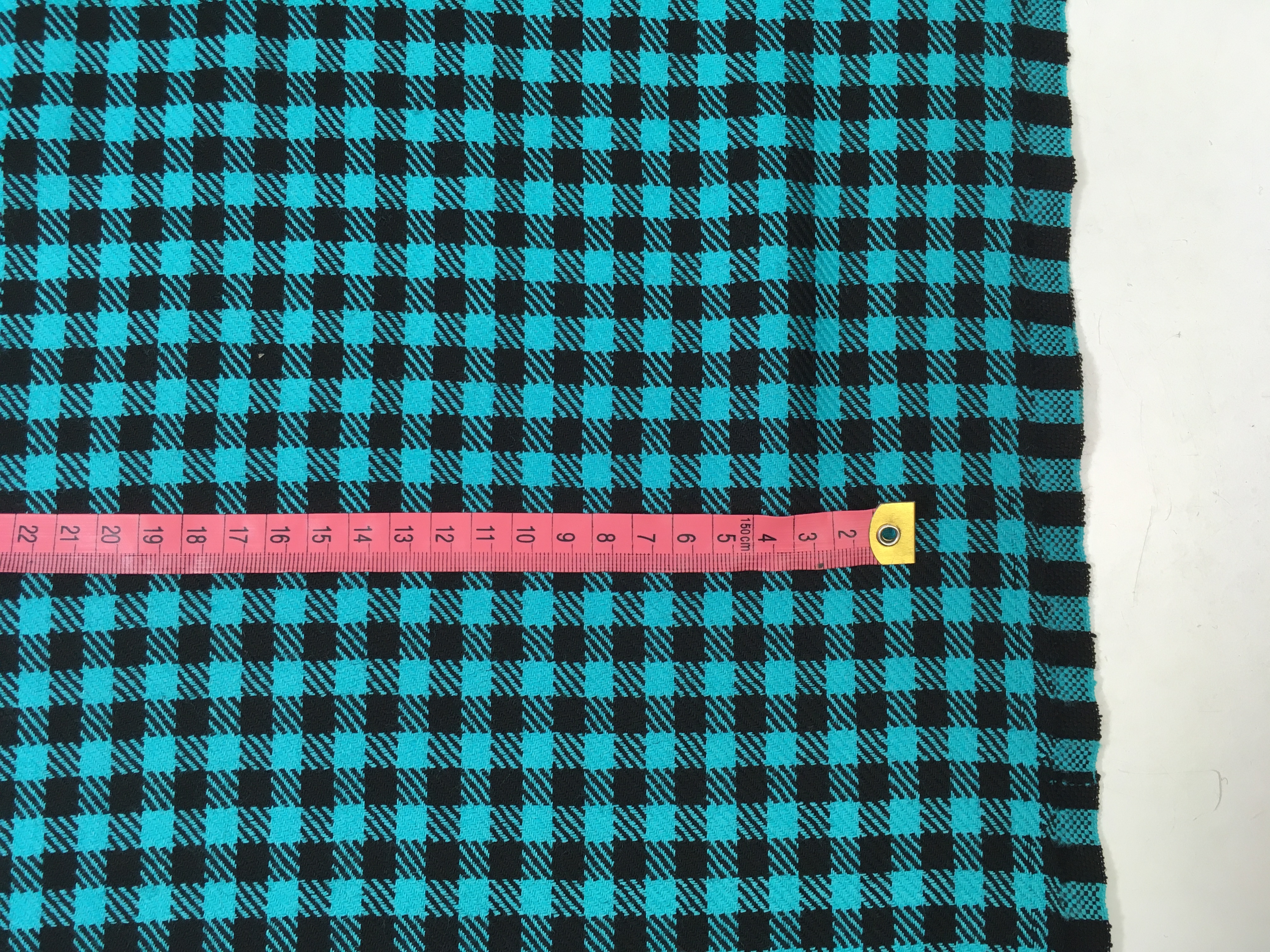 Tkanina ubraniowa, wełna z domieszką, czarno-niebieska kratka
