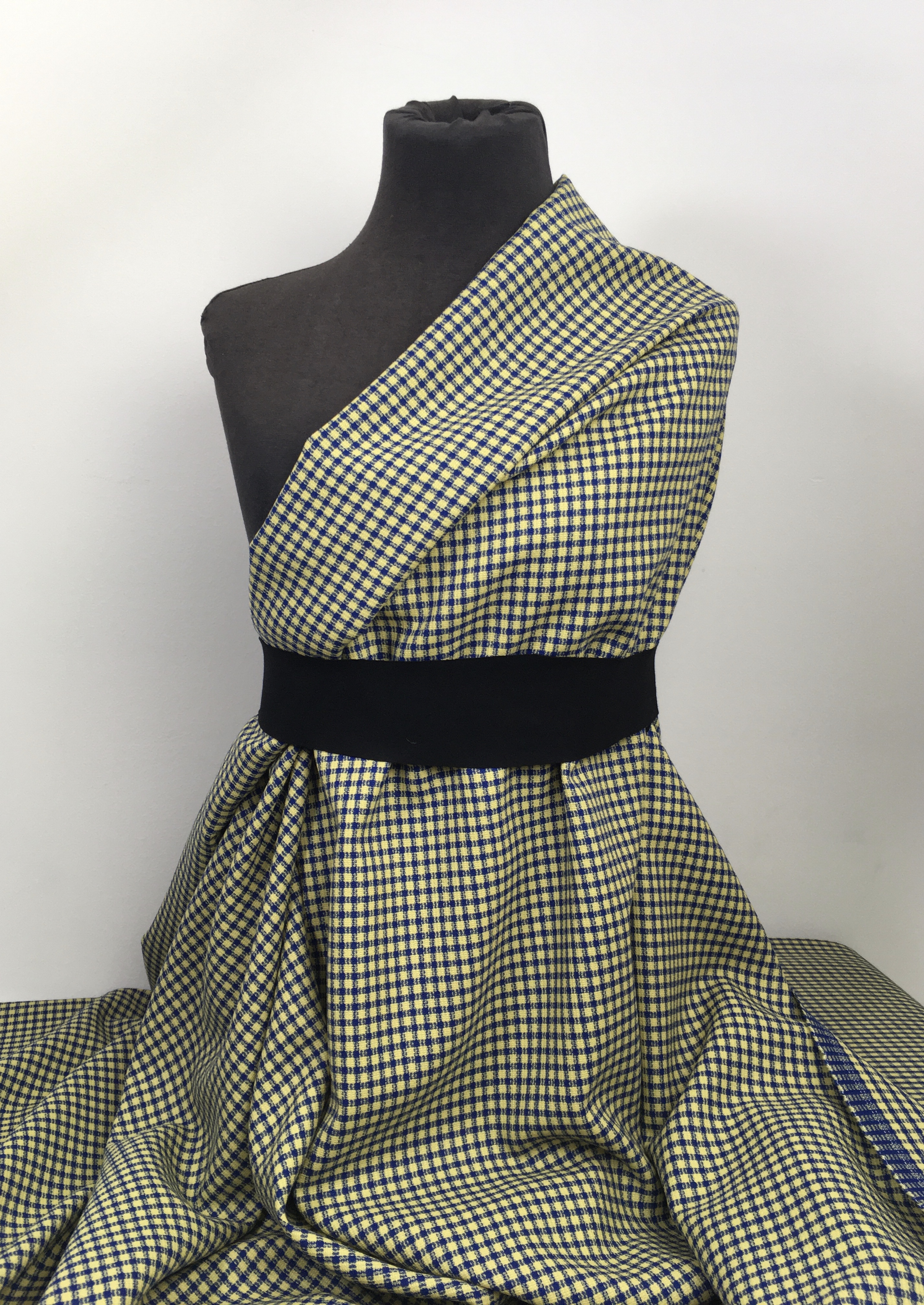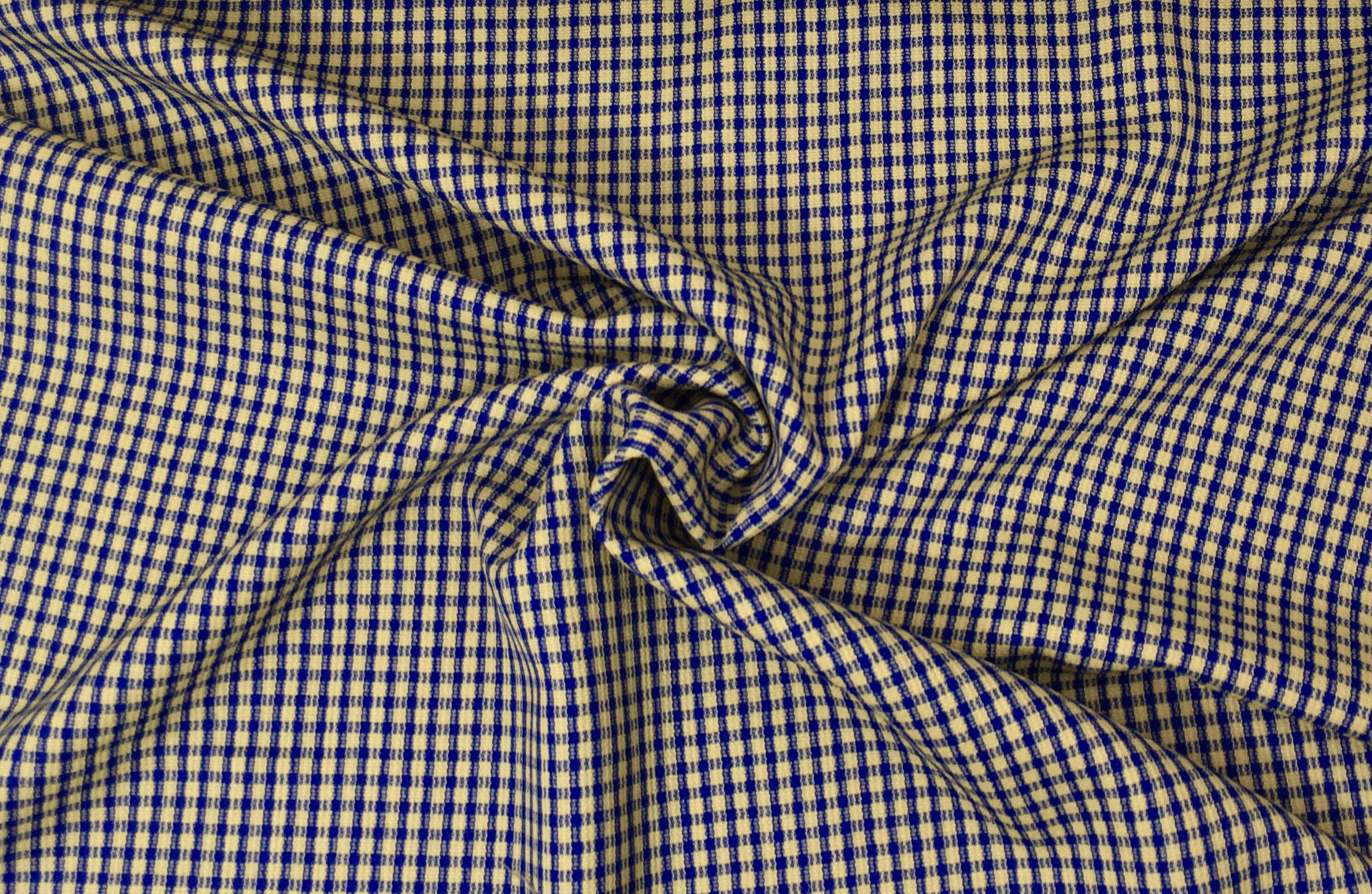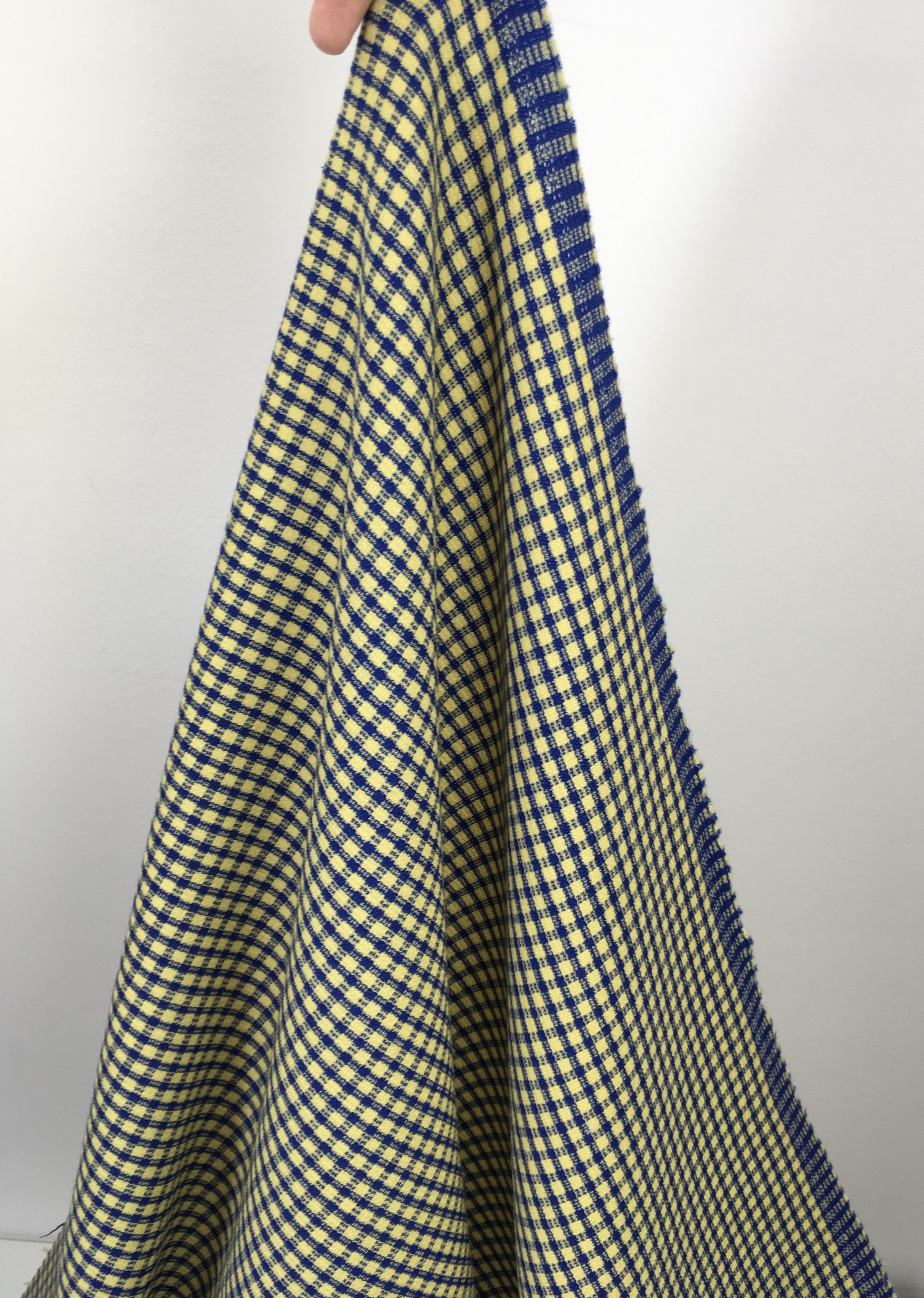 Tkanina ubraniowa, wełna z poliestrem, niebiesko-żółta kratka