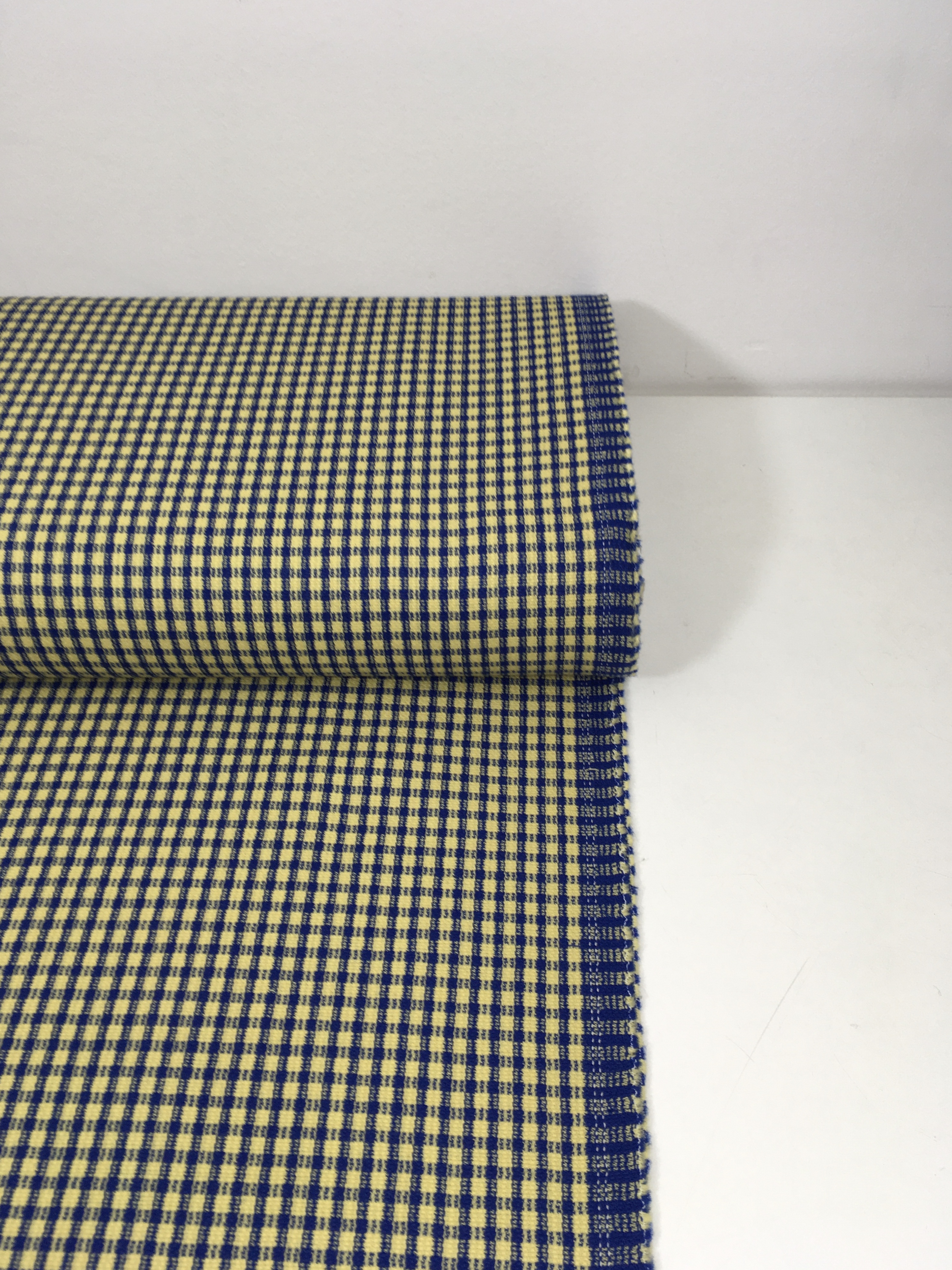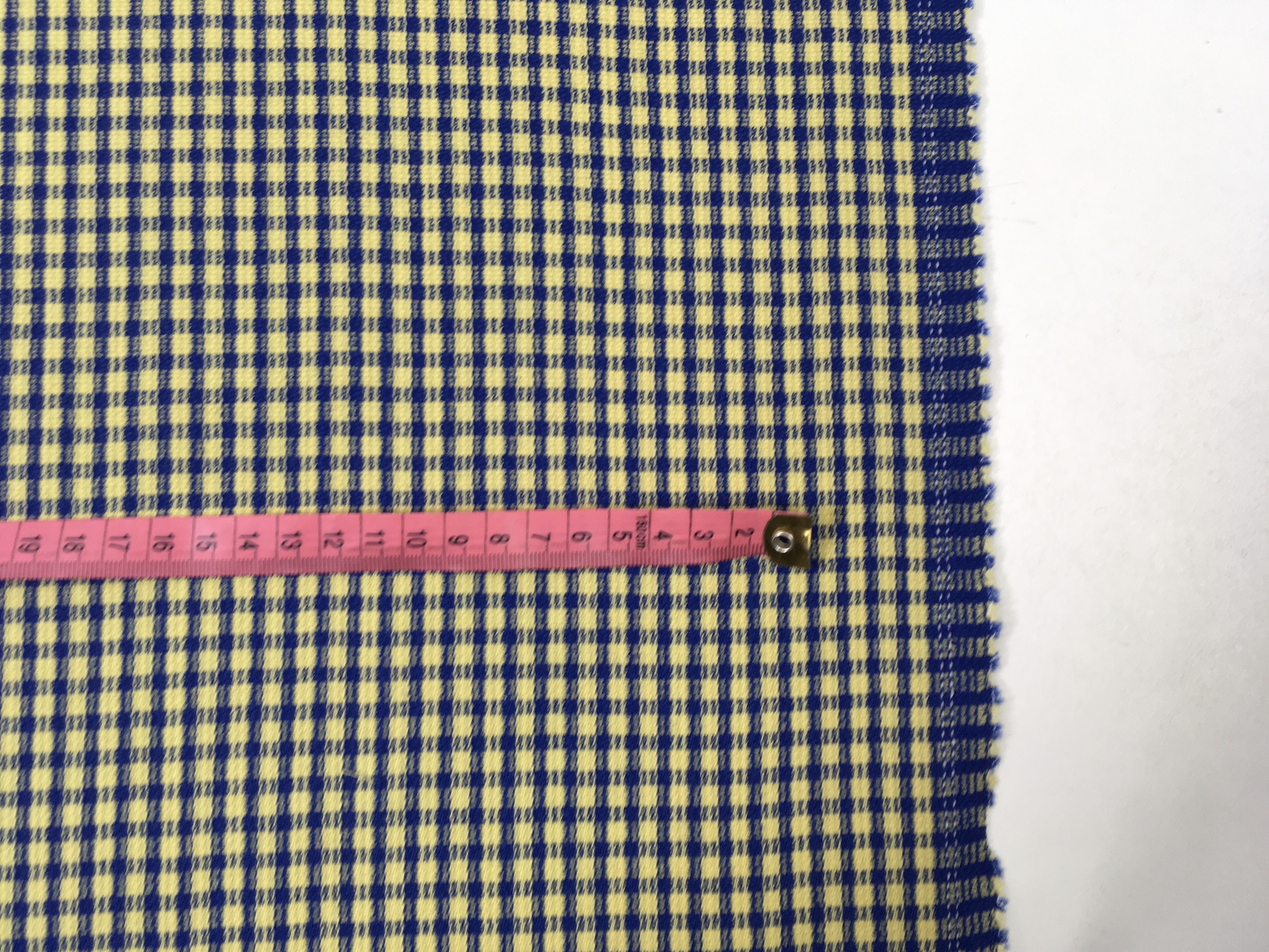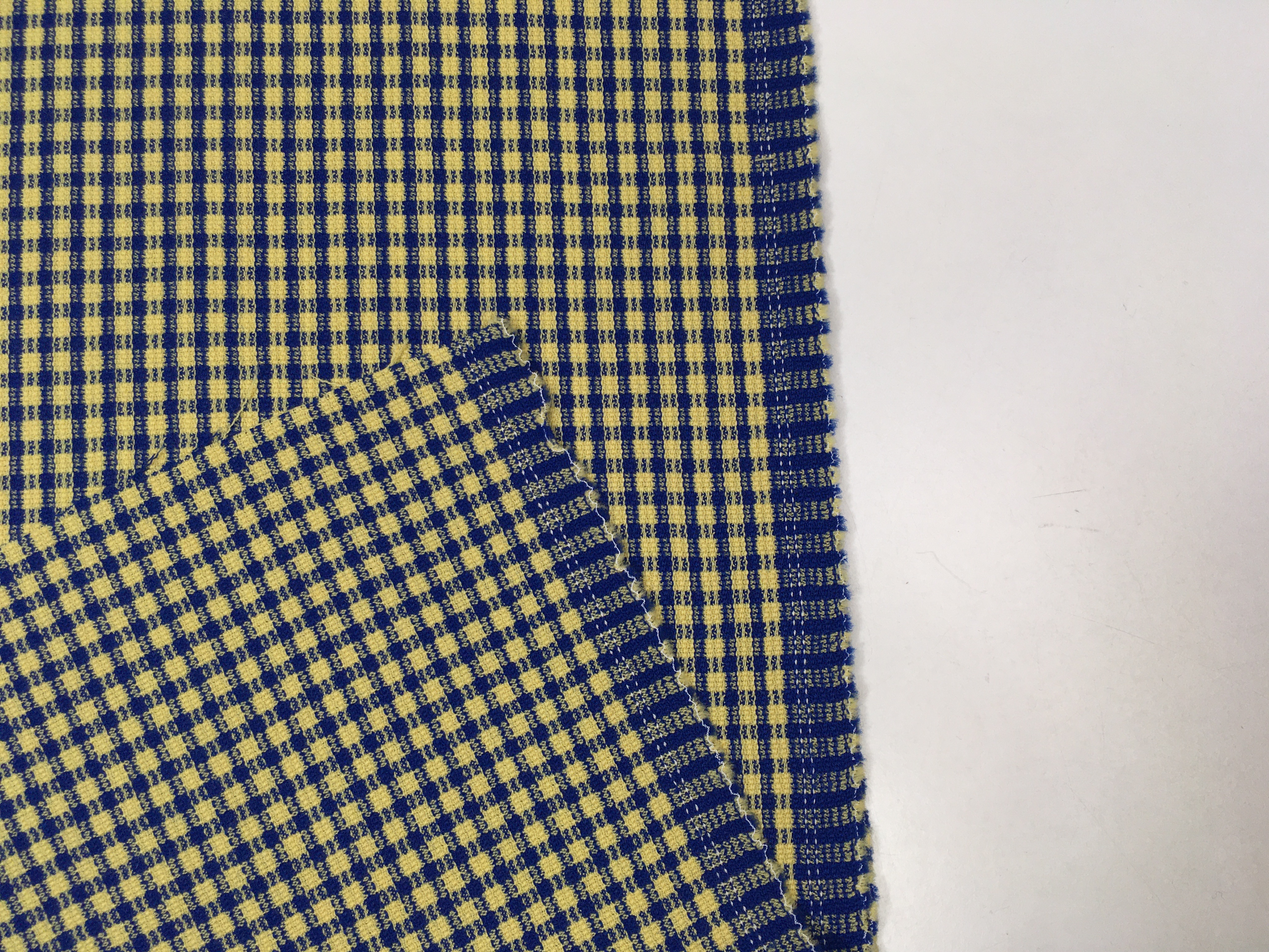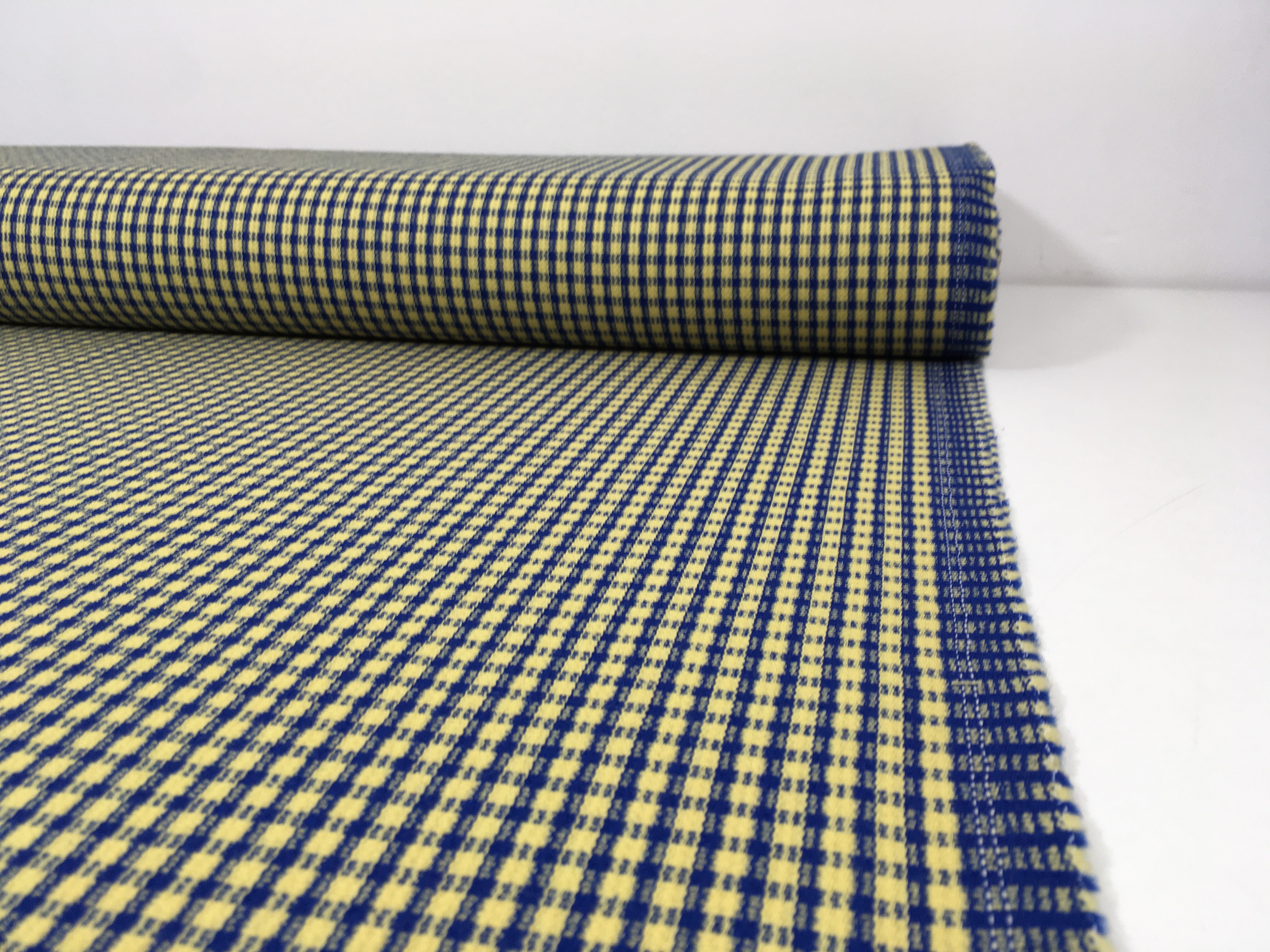 Tkanina ubraniowa, wełna z poliestrem, niebiesko-żółta kratka